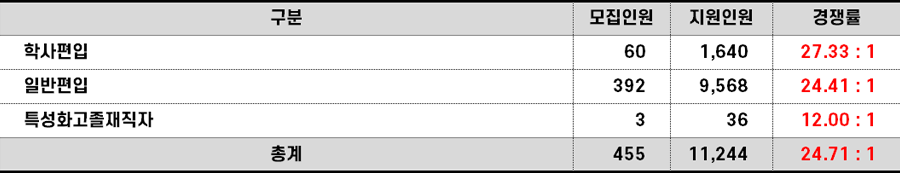 2023학년도 건국대 편입 전형별 경쟁률 현황