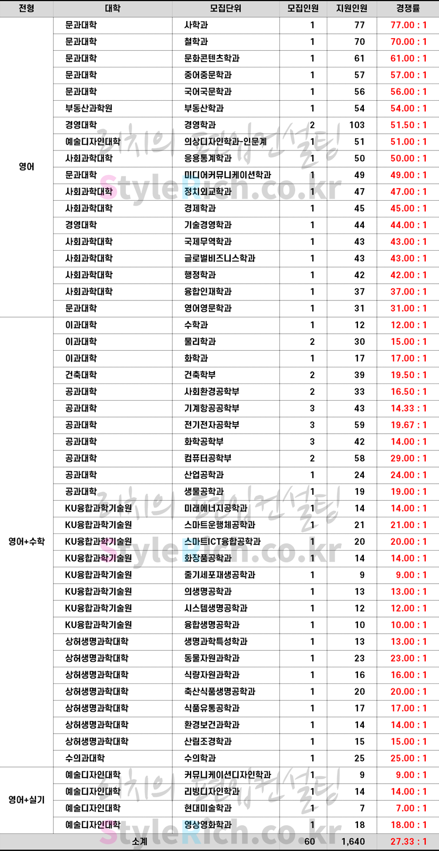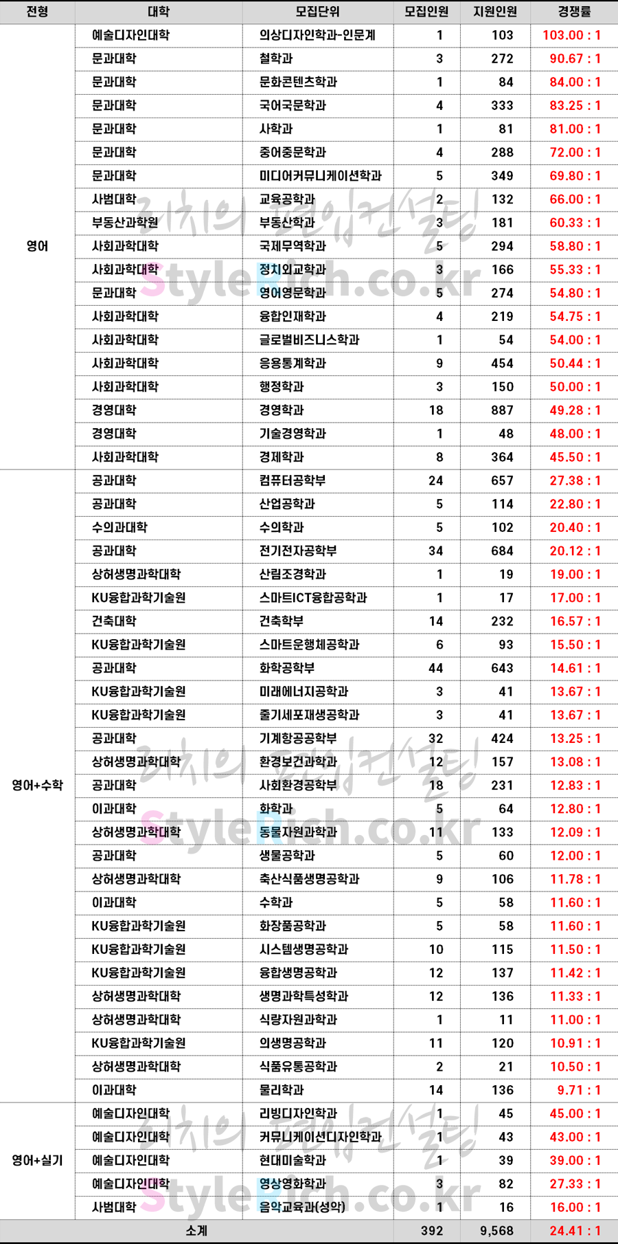 2023학년도 건국대 편입 전형별 경쟁률