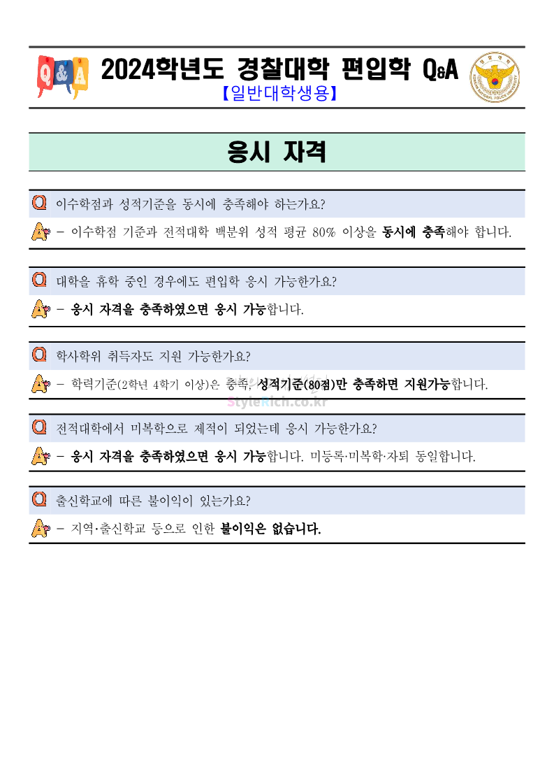 2024학년도 경찰대 편입 Q&A(일반대학생용)