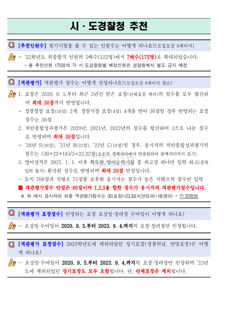 * 일반대학생과 재직경찰관 순으로 분류하여 표시하였으니 내용 확인 시 유의 바랍니다.