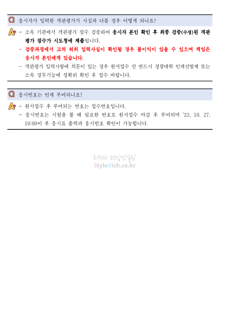 * 일반대학생과 재직경찰관 순으로 분류하여 표시하였으니 내용 확인 시 유의 바랍니다.