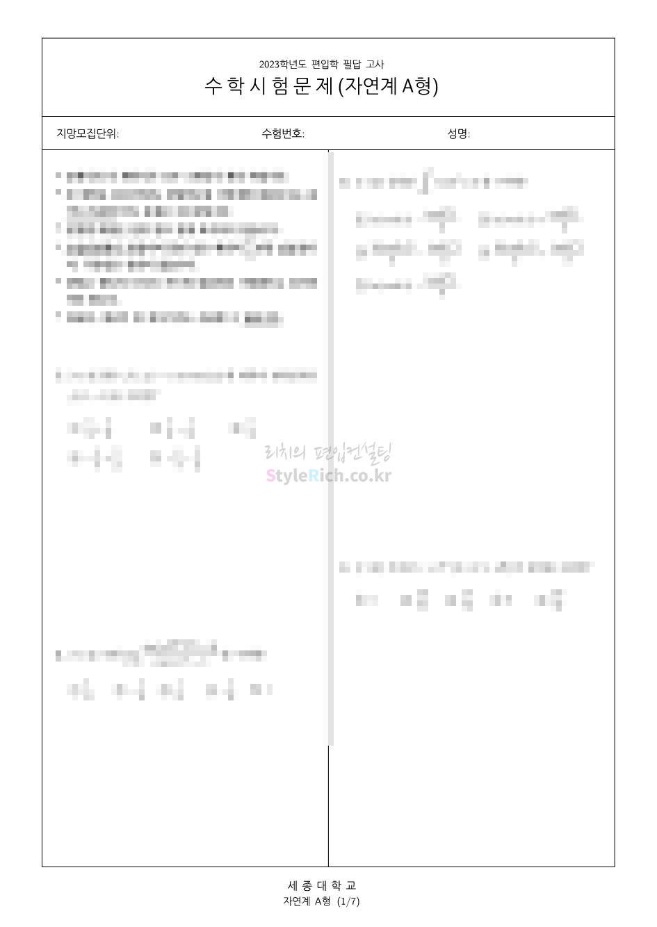2023학년도 세종대 편입 기출문제 자연계(A형) 문제.pdf
