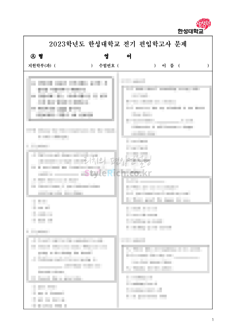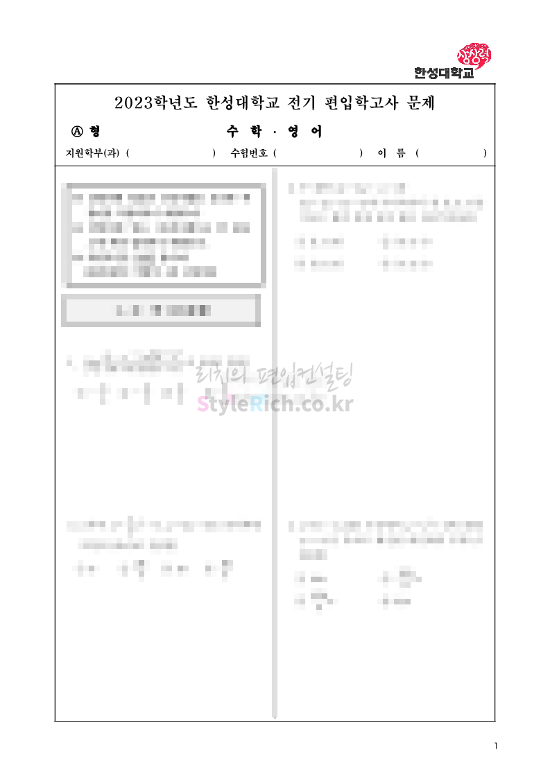 2023학년도-한성대-편입-기출문제-영어+수학-A형