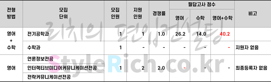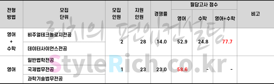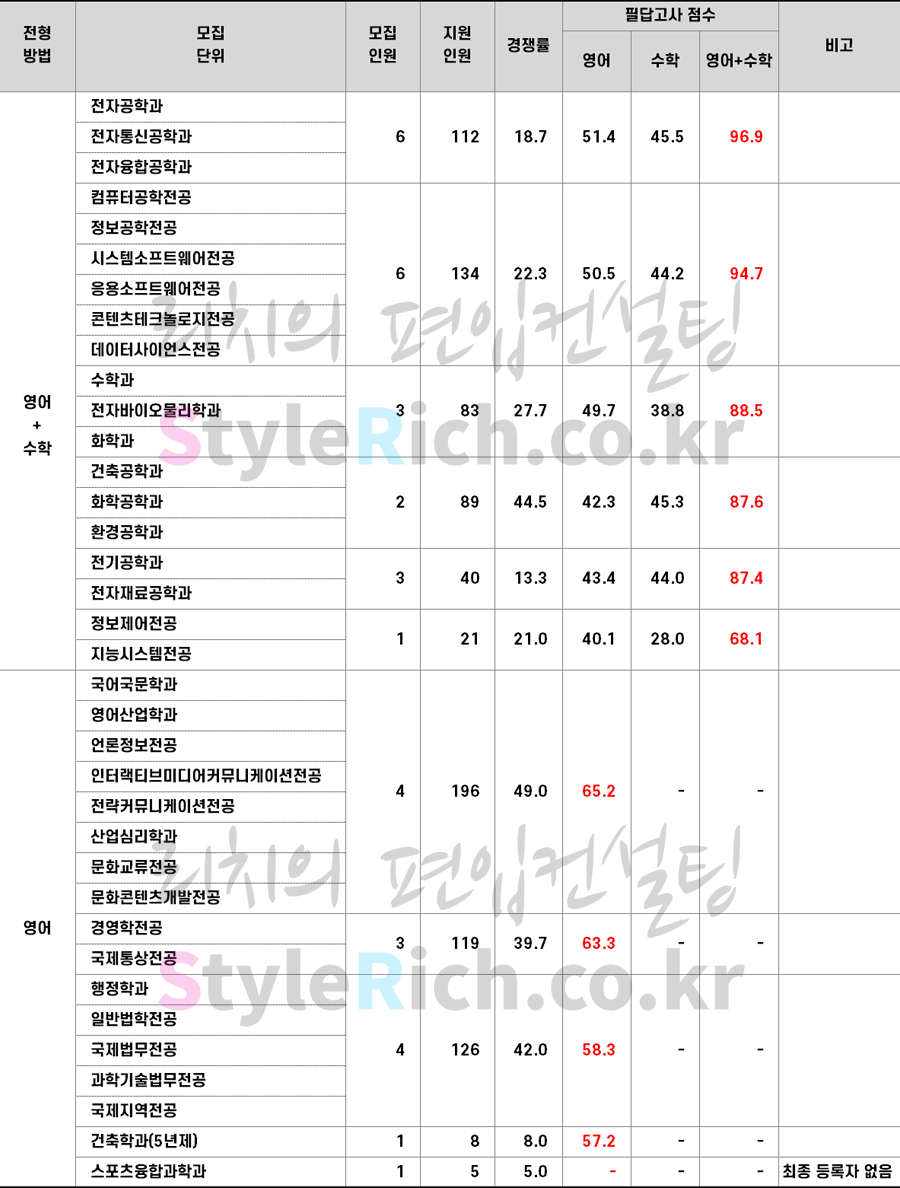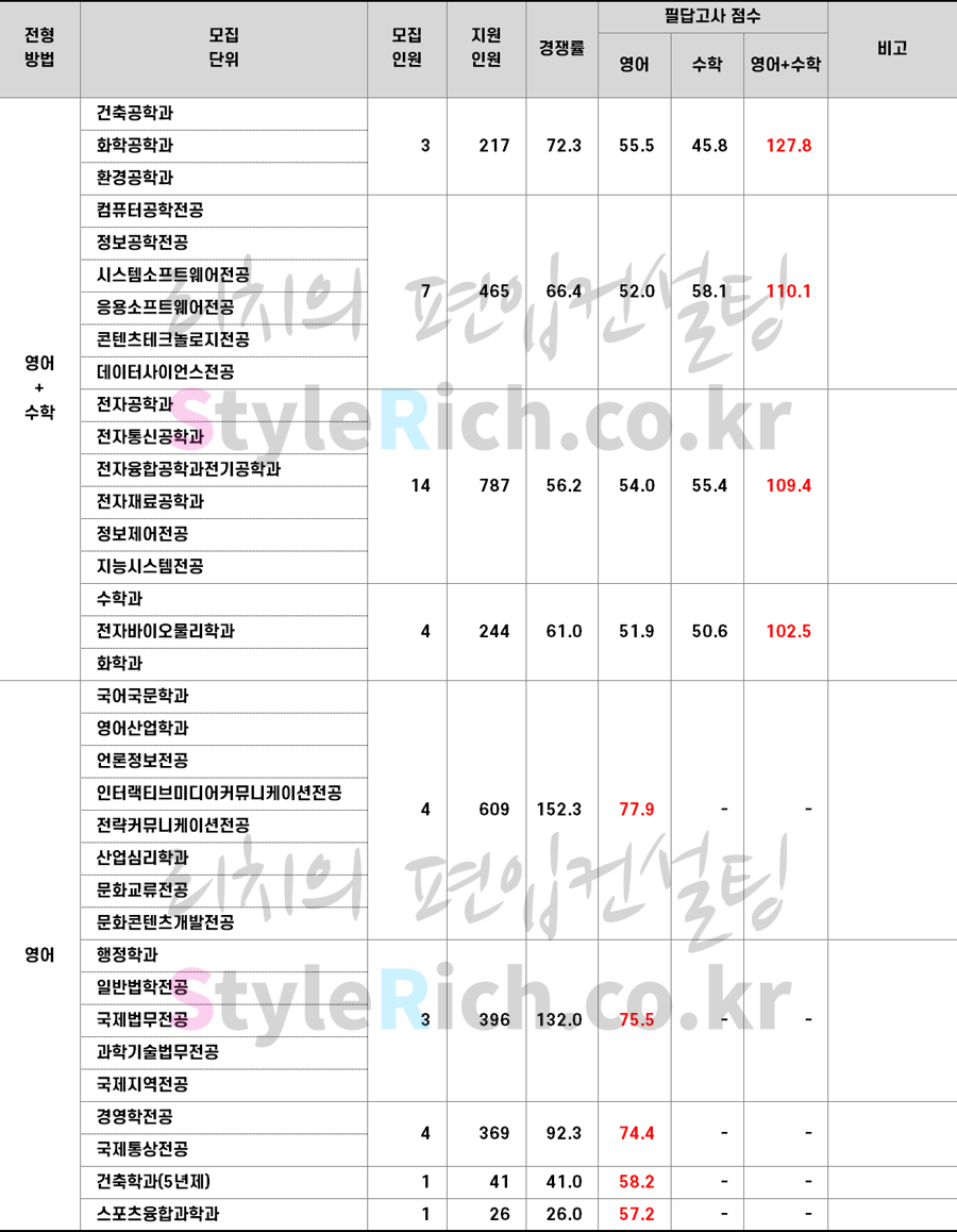 * 본 입시결과는 전형별/모집단위별 최종등록자의 평균성적임