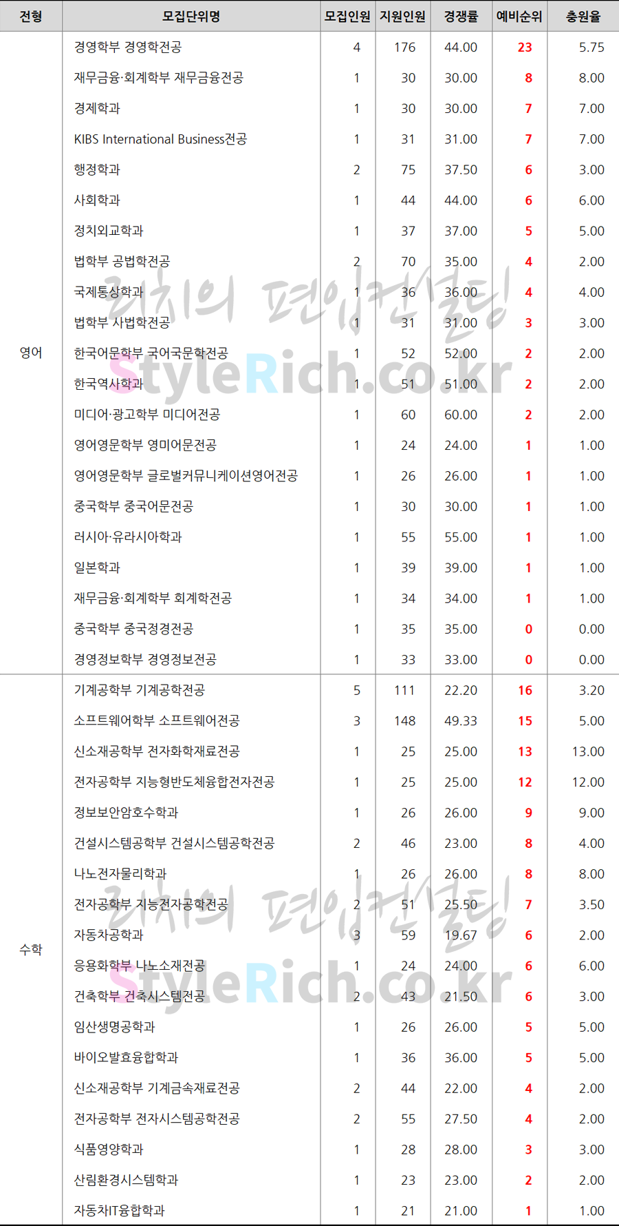 국민대 편입 2022학년도 추가합격 예비순위(예비번호)를 알아보자! 2023.10.09 01:14 편입 합격점수 & 추가합격/2022학년도 합격점수 & 추가합격 2022학년도 국민대 편입 추가합격 예비순위(예비번호)를 살펴보겠습니다. * 2022학년도 국민대 편입은 일반편입을 모집하지 않음 * 전형방법이 기존과 다르게 인문 영어 100%, 자연 수학100%로 변경 * 전형방법에 따라 분류 후 추가합격이 많은 순으로 정렬 2022학년도 국민대 학사편입 추가합격 현황 2022학년도 국민대 학사편입 추가합격 예비순위(예비번호) <출처: 국민대> 공유하기 게시글 관리 리치의 편입컨설팅 저작자표시 비영리 변경금지 (새창열림) '편입 합격점수 & 추가합격 > 2022학년도 합격점수 & 추가합격' 카테고리의 다른 글 아주대 편입 2022학년도 추가합격 충원인원을 알아보자! (0) 2023.02.12 동국대 편입 2022학년도 추가합격 예비순위(예비번호)를 알아보자! (0) 2023.02.11 세종대 편입 2022학년도 추가합격 예비순위(예비번호)를 알아보자! (0) 2023.02.11 서울시립대 편입 2022학년도 합격점수(1단계 합격점수)를 알아보자! (0) 2023.01.01 고려대(세종) 편입 2022학년도 추가합격 예비순위(예비번호)를 알아보자! (0) 2023.01.01 댓글 공유하기 다른 글 댓글 이 글 공유하기 구독하기 구독하기 카카오톡 카카오톡 라인 라인 트위터 트위터 Facebook Facebook 카카오스토리 카카오스토리 밴드 밴드 네이버 블로그 네이버 블로그 Pocket Pocket Evernote Evernote 다른 글 아주대 편입 2022학년도 추가합격 충원인원을 알아보자! 아주대 편입 2022학년도 추가합격 충원인원을 알아보자! 2023.02.12 동국대 편입 2022학년도 추가합격 예비순위(예비번호)를 알아보자! 동국대 편입 2022학년도 추가합격 예비순위(예비번호)를 알아보자! 2023.02.11 세종대 편입 2022학년도 추가합격 예비순위(예비번호)를 알아보자! 세종대 편입 2022학년도 추가합격 예비순위(예비번호)를 알아보자! 2023.02.11 서울시립대 편입 2022학년도 합격점수(1단계 합격점수)를 알아보자! 서울시립대 편입 2022학년도 합격점수(1단계 합격점수)를 알아보자! 2023.01.01 다른 글 더 둘러보기