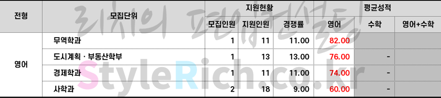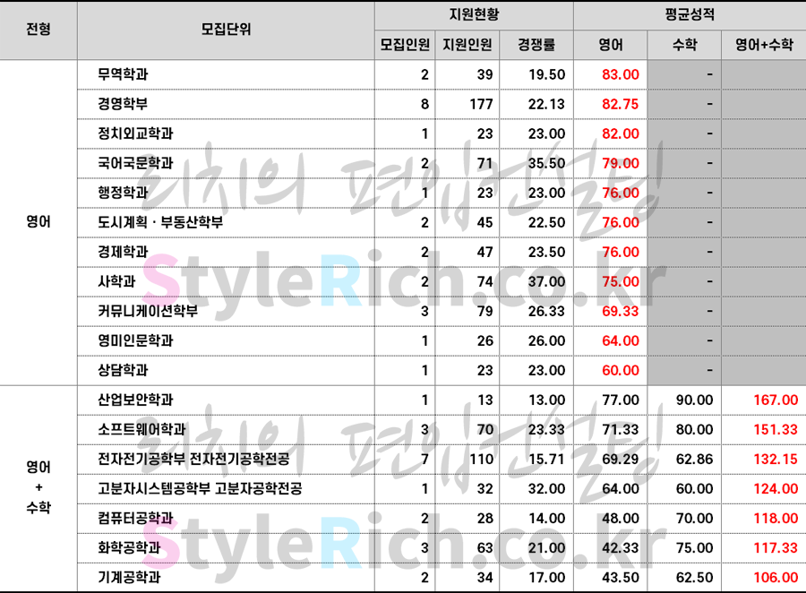 * 필기고사 성적(영어, 수학)은 최종등록자(입학생)의 평균성적임
