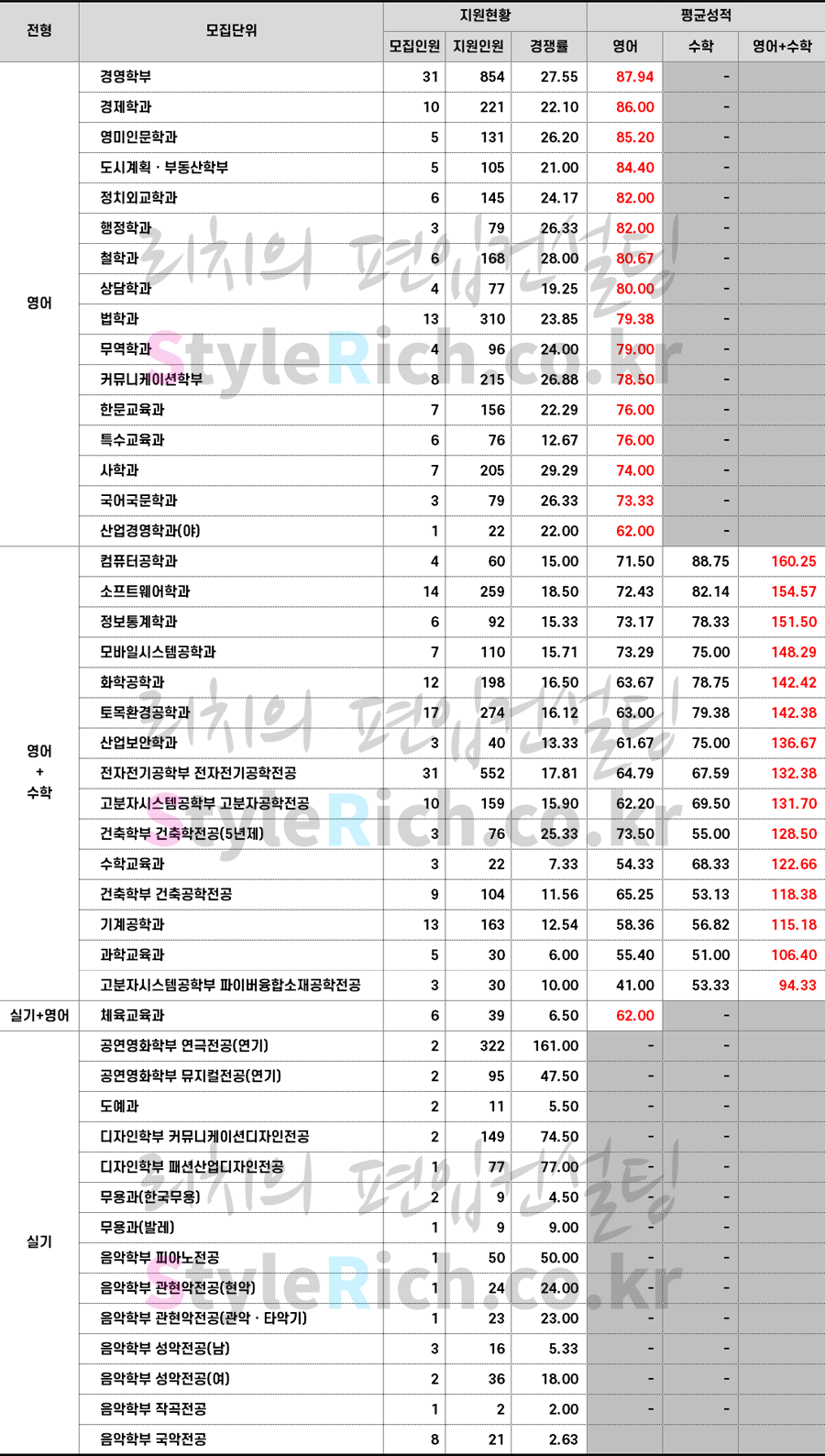 * 필기고사 성적(영어, 수학)은 최종등록자(입학생)의 평균성적임
