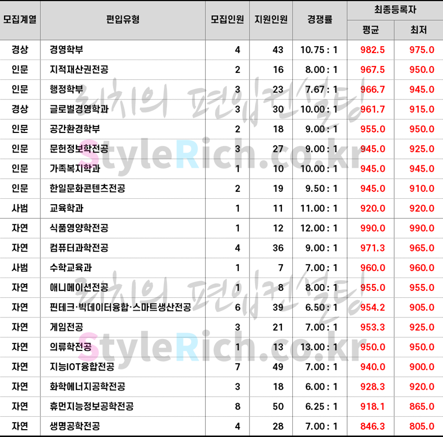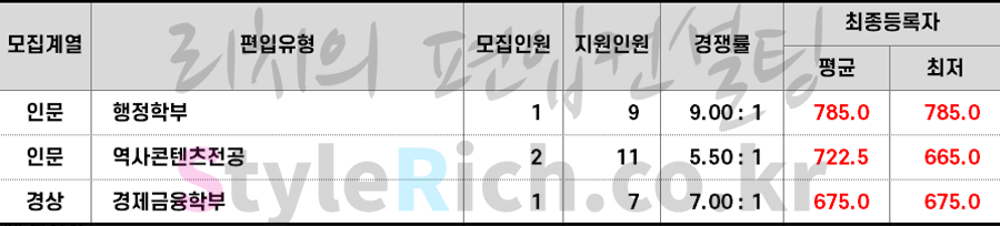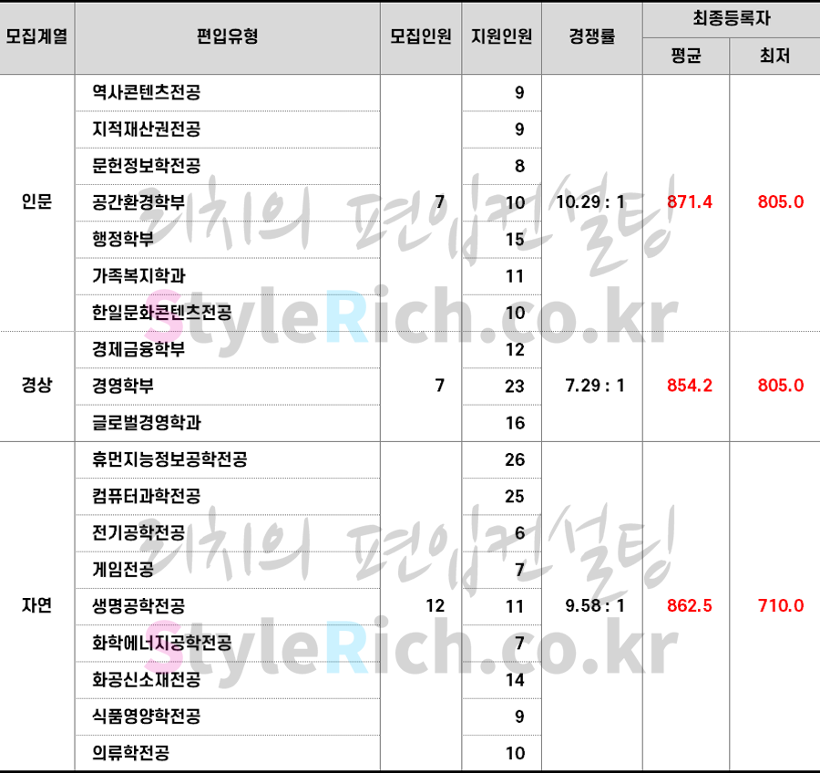2023학년도 상명대 학사편입 합격점수(평균점수, 최저점수)