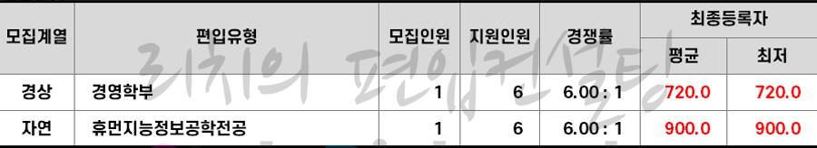 2023학년도 상명대 농어촌학생편입 합격점수(평균점수, 최저점수)