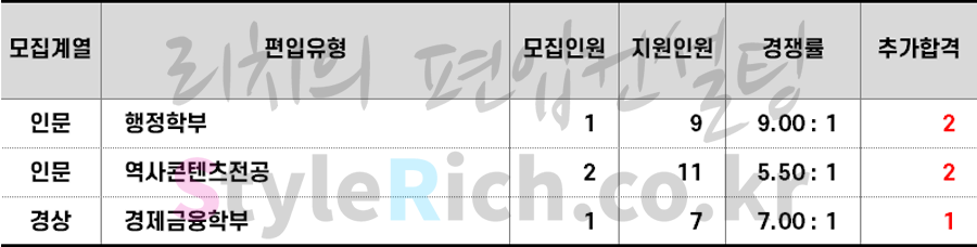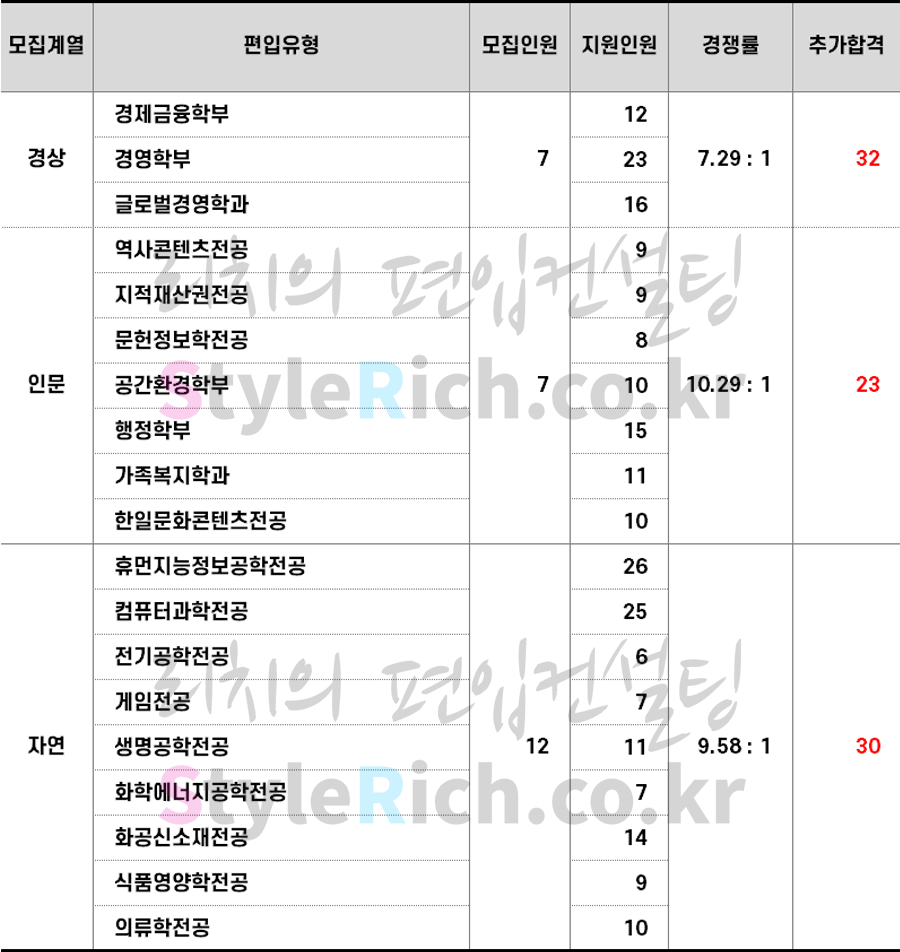 2023학년도 상명대 농어촌학생편입 추가합격 현황