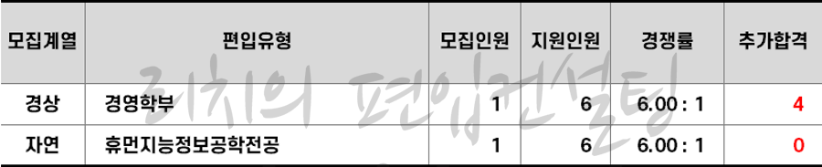 2023학년도 상명대 특성화고교졸업자편입 추가합격 현황