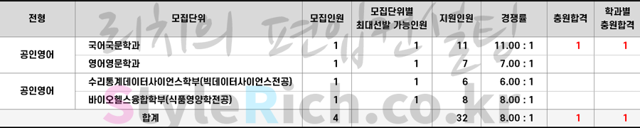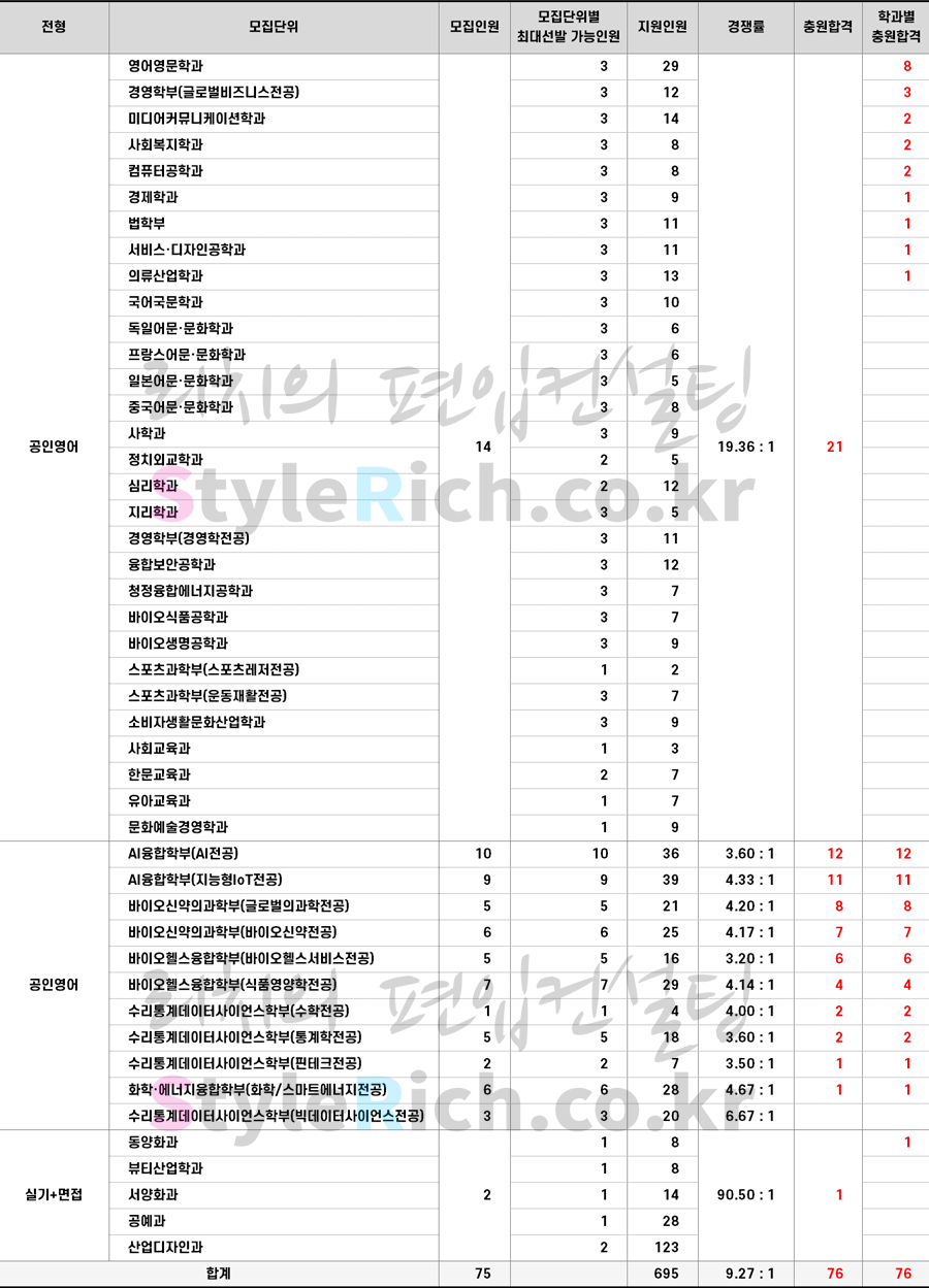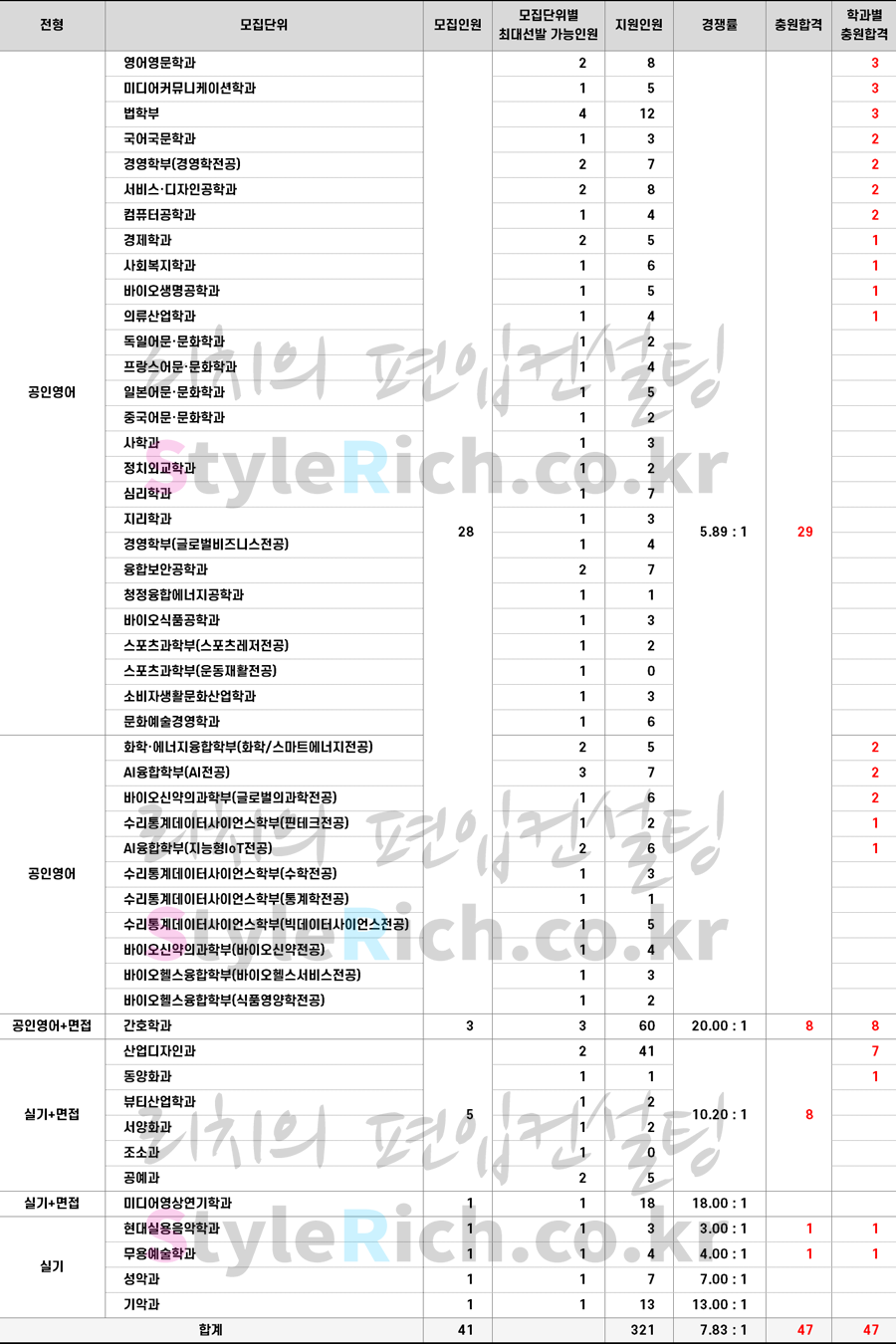 2023학년도 성신여대 농어촌학생편입 추가합격 현황