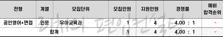 2023학년도 인천대 유치원교사양성편입 추가합격 현황