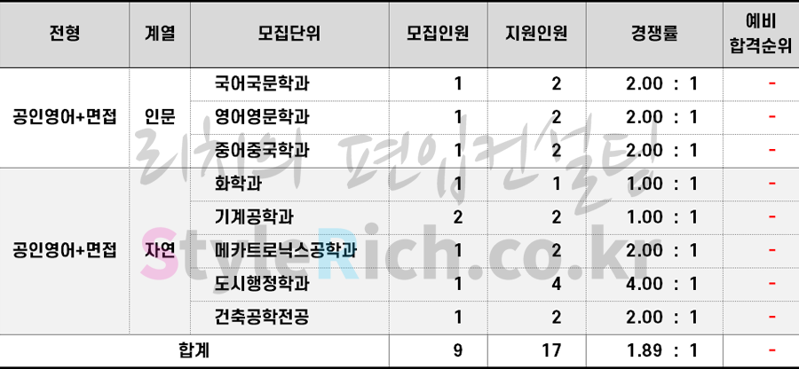 2023학년도 인천대 농어촌학생편입 추가합격 현황