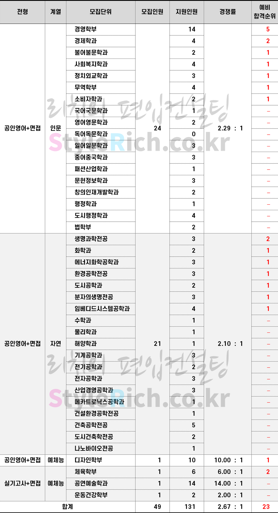 2023학년도 인천대 공무원위편입 추가합격 예비순위(예비번호)