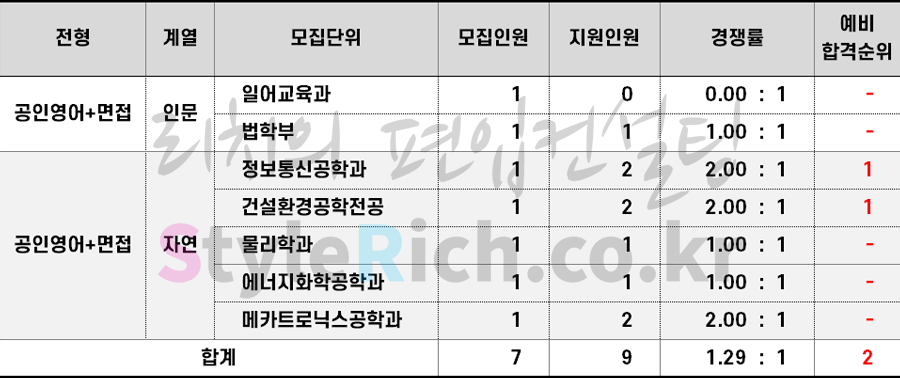 2023학년도 인천대 학사편입 추가합격 현황