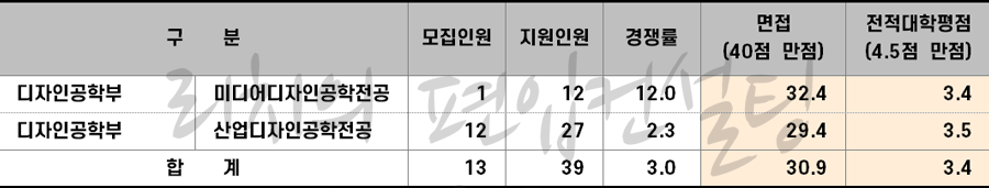 2023학년도 한국공학대 일반편입(면접:포트폴리오) 합격점수 현황