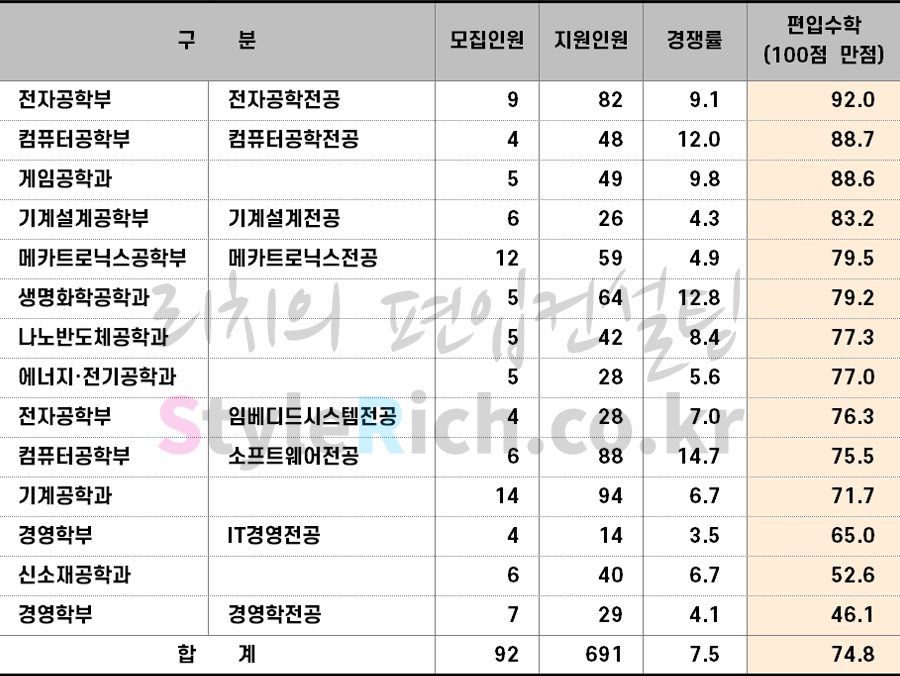 2023학년도 한국공학대 편입 합격점수를 살펴보겠습니다.