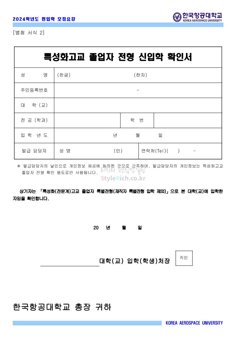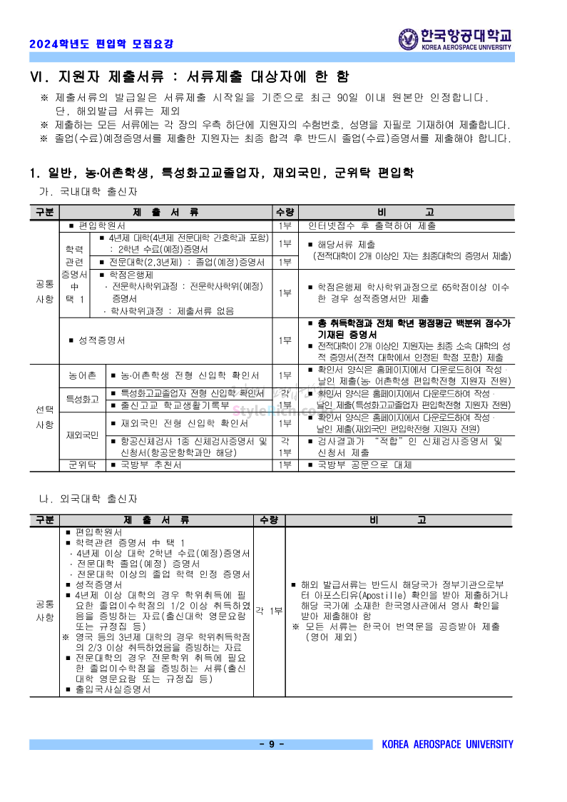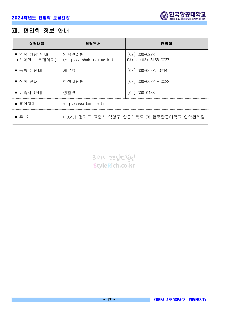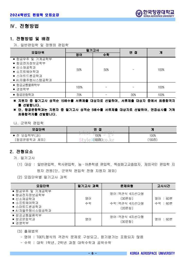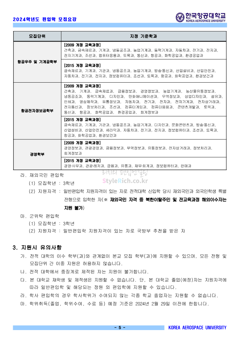 한국항공대 편입 2024학년도 모집요강 간편하게 보자! 2023.11.23 20:28 편입 모집요강/2024학년도 모집요강 2024학년도 한국항공대 편입 모집요강(2023.11.22 기준)을 간편하게 확인하세요. * 최종 모집요강 발표 이후에도 내용의 일부가 변경될 수 있으니 지원 전 반드시 한국항공대 입학처에서 확인하세요. ☞한국항공대 편입 최신 모집요강 확인하기☜ <출처: 한국항공대> 체험 삶의 현장 | 경의중앙선 통학러 편 공유하기 게시글 관리 리치의 편입컨설팅 저작자표시 비영리 변경금지 (새창열림) '편입 모집요강 > 2024학년도 모집요강' 카테고리의 다른 글 명지대 편입 2024학년도 모집요강 간편하게 보자! (0) 2023.11.25 국민대 편입 2024학년도 모집요강 간편하게 보자! (0) 2023.11.25 단국대(죽전) 편입 2024학년도 모집요강 간편하게 보자! (0) 2023.11.23 고려대 편입 2024학년도 자연계 필기고사 출제범위 및 참고도서를 알아보자! (0) 2023.11.23 가천대 편입 2024학년도 모집요강 간편하게 보자! (0) 2023.11.23 댓글 공유하기 다른 글 댓글 이 글 공유하기 구독하기 구독하기 카카오톡 카카오톡 라인 라인 트위터 트위터 Facebook Facebook 카카오스토리 카카오스토리 밴드 밴드 네이버 블로그 네이버 블로그 Pocket Pocket Evernote Evernote 다른 글 명지대 편입 2024학년도 모집요강 간편하게 보자! 명지대 편입 2024학년도 모집요강 간편하게 보자! 2023.11.25 국민대 편입 2024학년도 모집요강 간편하게 보자! 국민대 편입 2024학년도 모집요강 간편하게 보자! 2023.11.25 단국대(죽전) 편입 2024학년도 모집요강 간편하게 보자! 단국대(죽전) 편입 2024학년도 모집요강 간편하게 보자! 2023.11.23 고려대 편입 2024학년도 자연계 필기고사 출제범위 및 참고도서를 알아보자! 고려대 편입 2024학년도 자연계 필기고사 출제범위 및 참고도서를 알아보자! 2023.11.23 다른 글 더 둘러보기