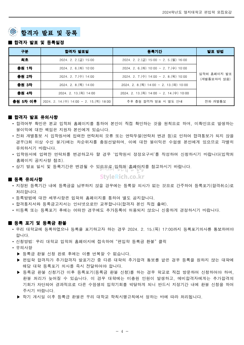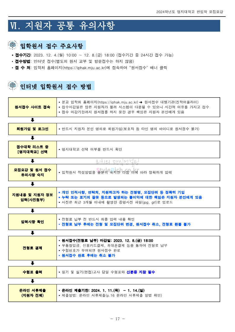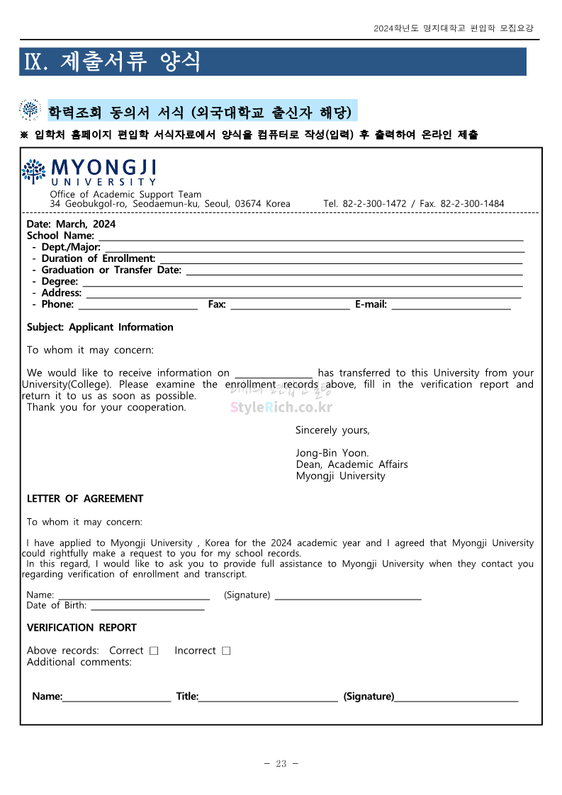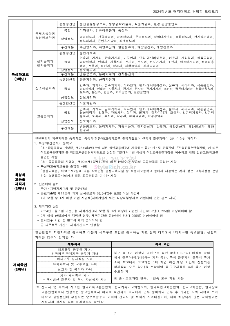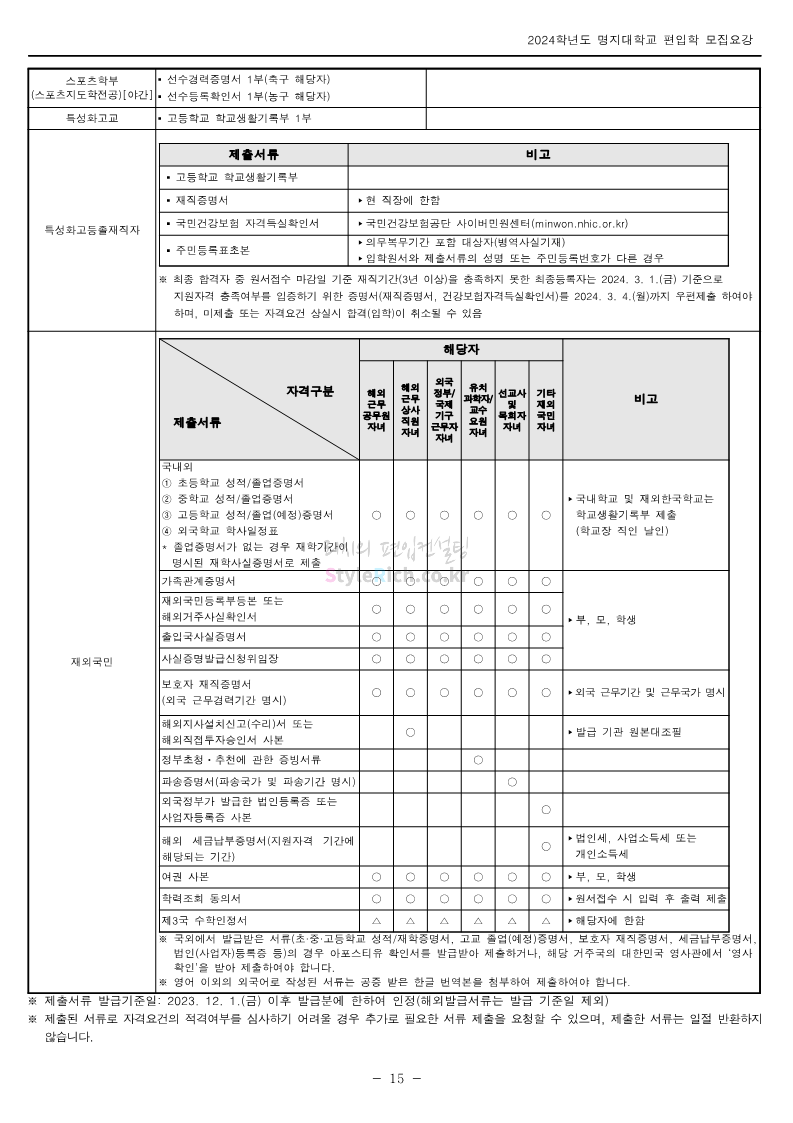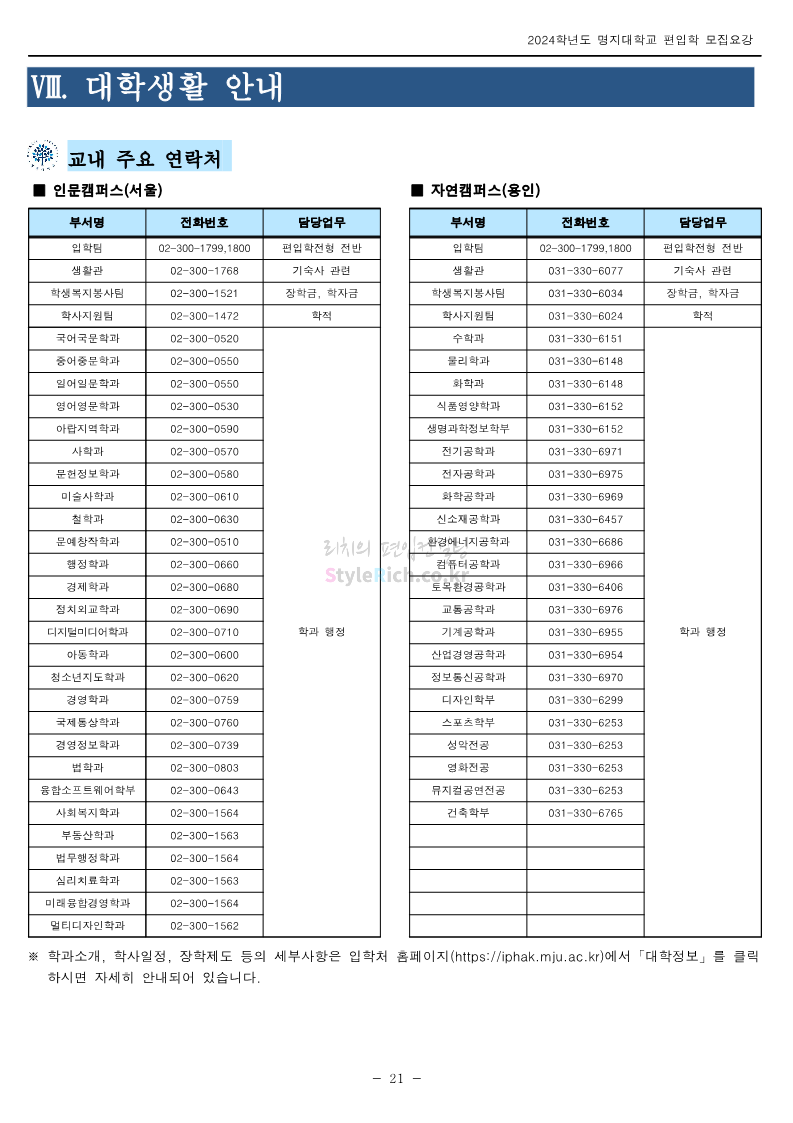 명지대 편입 2024학년도 모집요강 간편하게 보자! 2023.11.25 02:17 편입 모집요강/2024학년도 모집요강 2024학년도 명지대 편입 모집요강(2023.11.28 수정 기준)을 간편하게 확인하세요. * 최종 모집요강 발표 이후에도 내용의 일부가 변경될 수 있으니 지원 전 반드시 명지대 입학처에서 확인하세요. ☞명지대 편입 최신 모집요강 확인하기☜ <출처: 명지대> 공유하기 게시글 관리 리치의 편입컨설팅 저작자표시 비영리 변경금지 (새창열림) '편입 모집요강 > 2024학년도 모집요강' 카테고리의 다른 글 경기대 편입 2024학년도 모집요강 간편하게 보자! (0) 2023.11.27 한국항공대 편입 2024학년도 모집요강 간편하게 보자! (0) 2023.11.25 국민대 편입 2024학년도 모집요강 간편하게 보자! (0) 2023.11.25 한국항공대 편입 2024학년도 모집요강 간편하게 보자! (0) 2023.11.23 단국대(죽전) 편입 2024학년도 모집요강 간편하게 보자! (0) 2023.11.23 댓글 공유하기 다른 글 댓글 이 글 공유하기 구독하기 구독하기 카카오톡 카카오톡 라인 라인 트위터 트위터 Facebook Facebook 카카오스토리 카카오스토리 밴드 밴드 네이버 블로그 네이버 블로그 Pocket Pocket Evernote Evernote 다른 글 경기대 편입 2024학년도 모집요강 간편하게 보자! 경기대 편입 2024학년도 모집요강 간편하게 보자! 2023.11.27 한국항공대 편입 2024학년도 모집요강 간편하게 보자! 한국항공대 편입 2024학년도 모집요강 간편하게 보자! 2023.11.25 국민대 편입 2024학년도 모집요강 간편하게 보자! 국민대 편입 2024학년도 모집요강 간편하게 보자! 2023.11.25 한국항공대 편입 2024학년도 모집요강 간편하게 보자! 한국항공대 편입 2024학년도 모집요강 간편하게 보자! 2023.11.23 다른 글 더 둘러보기