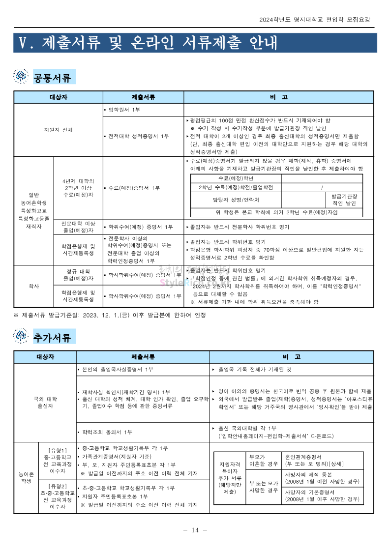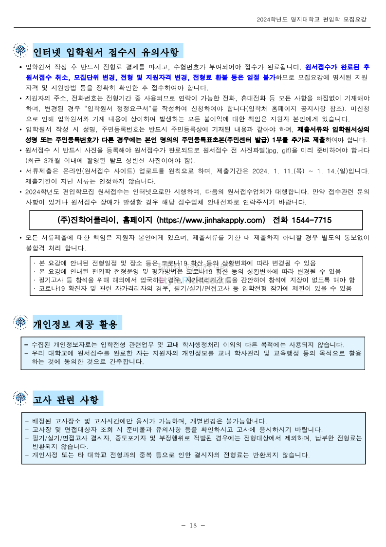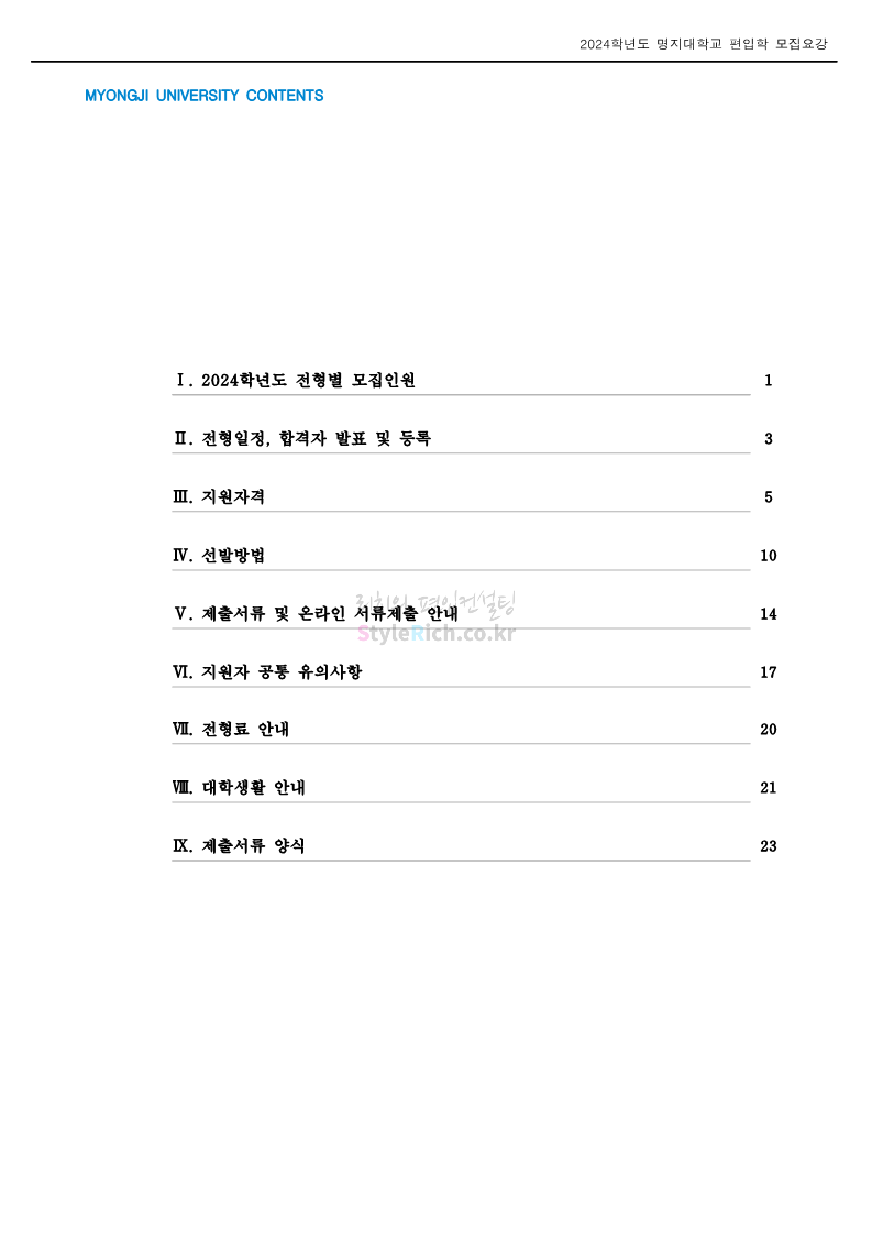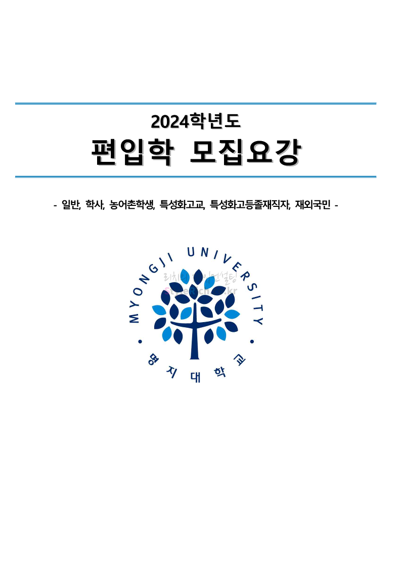 명지대 편입 2024학년도 모집요강 간편하게 보자! 2023.11.25 02:17 편입 모집요강/2024학년도 모집요강 2024학년도 명지대 편입 모집요강(2023.11.28 수정 기준)을 간편하게 확인하세요. * 최종 모집요강 발표 이후에도 내용의 일부가 변경될 수 있으니 지원 전 반드시 명지대 입학처에서 확인하세요. ☞명지대 편입 최신 모집요강 확인하기☜ <출처: 명지대> 공유하기 게시글 관리 리치의 편입컨설팅 저작자표시 비영리 변경금지 (새창열림) '편입 모집요강 > 2024학년도 모집요강' 카테고리의 다른 글 경기대 편입 2024학년도 모집요강 간편하게 보자! (0) 2023.11.27 한국항공대 편입 2024학년도 모집요강 간편하게 보자! (0) 2023.11.25 국민대 편입 2024학년도 모집요강 간편하게 보자! (0) 2023.11.25 한국항공대 편입 2024학년도 모집요강 간편하게 보자! (0) 2023.11.23 단국대(죽전) 편입 2024학년도 모집요강 간편하게 보자! (0) 2023.11.23 댓글 공유하기 다른 글 댓글 이 글 공유하기 구독하기 구독하기 카카오톡 카카오톡 라인 라인 트위터 트위터 Facebook Facebook 카카오스토리 카카오스토리 밴드 밴드 네이버 블로그 네이버 블로그 Pocket Pocket Evernote Evernote 다른 글 경기대 편입 2024학년도 모집요강 간편하게 보자! 경기대 편입 2024학년도 모집요강 간편하게 보자! 2023.11.27 한국항공대 편입 2024학년도 모집요강 간편하게 보자! 한국항공대 편입 2024학년도 모집요강 간편하게 보자! 2023.11.25 국민대 편입 2024학년도 모집요강 간편하게 보자! 국민대 편입 2024학년도 모집요강 간편하게 보자! 2023.11.25 한국항공대 편입 2024학년도 모집요강 간편하게 보자! 한국항공대 편입 2024학년도 모집요강 간편하게 보자! 2023.11.23 다른 글 더 둘러보기