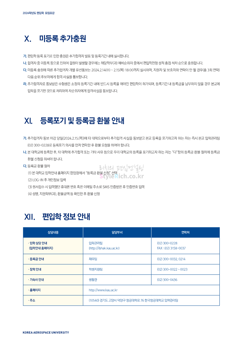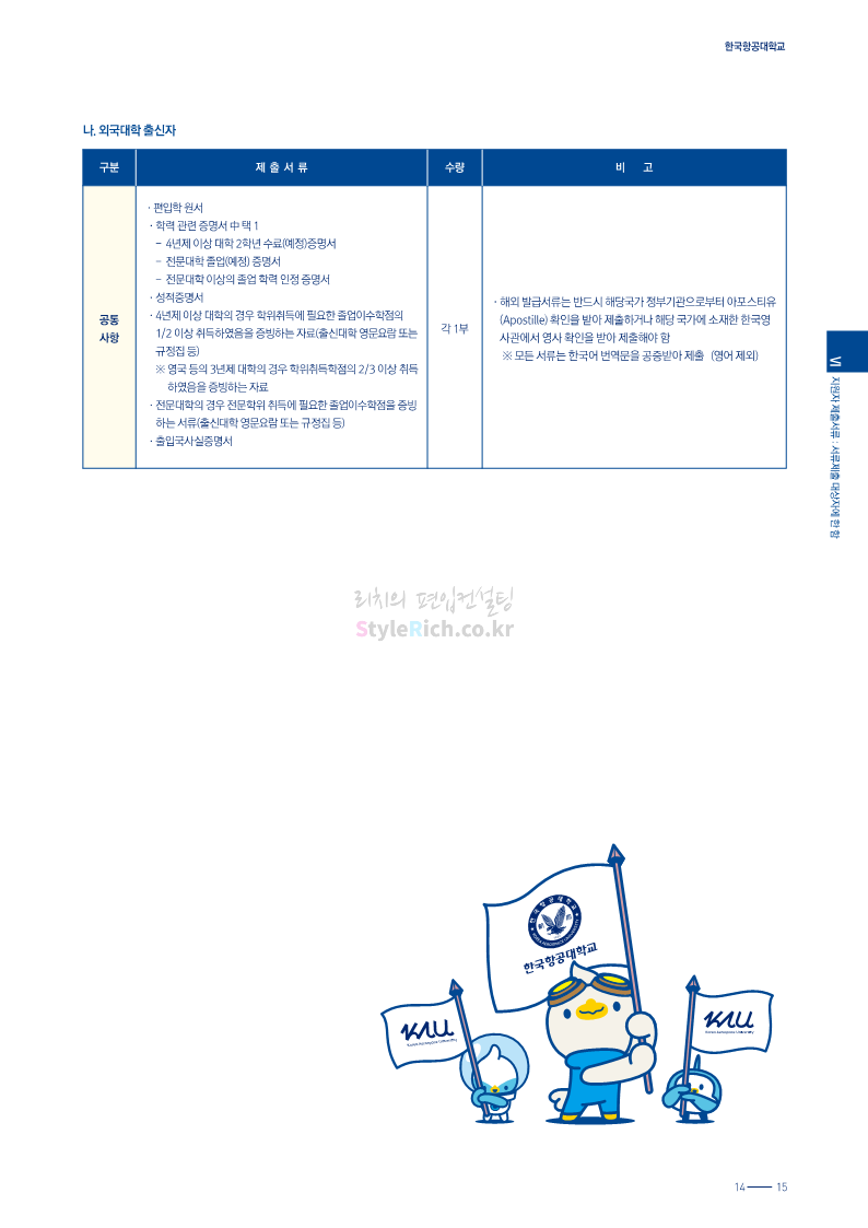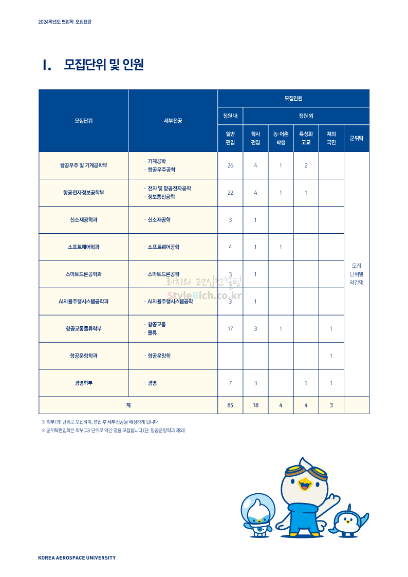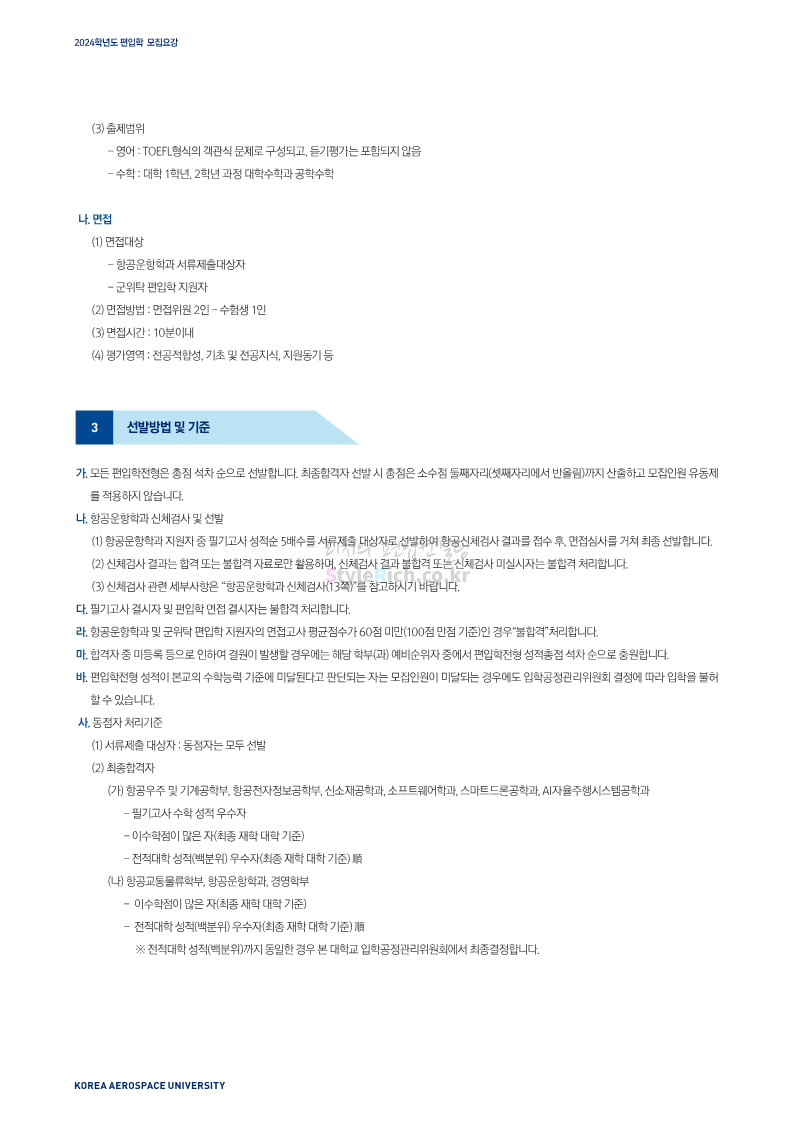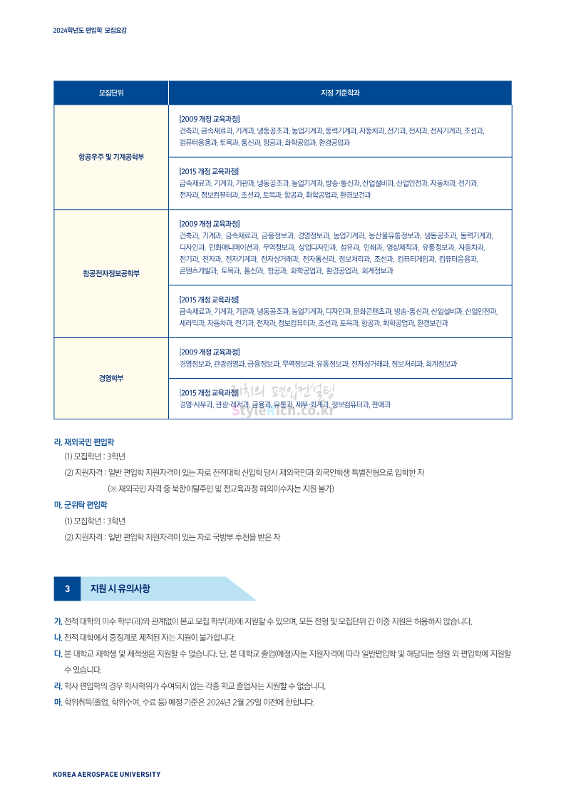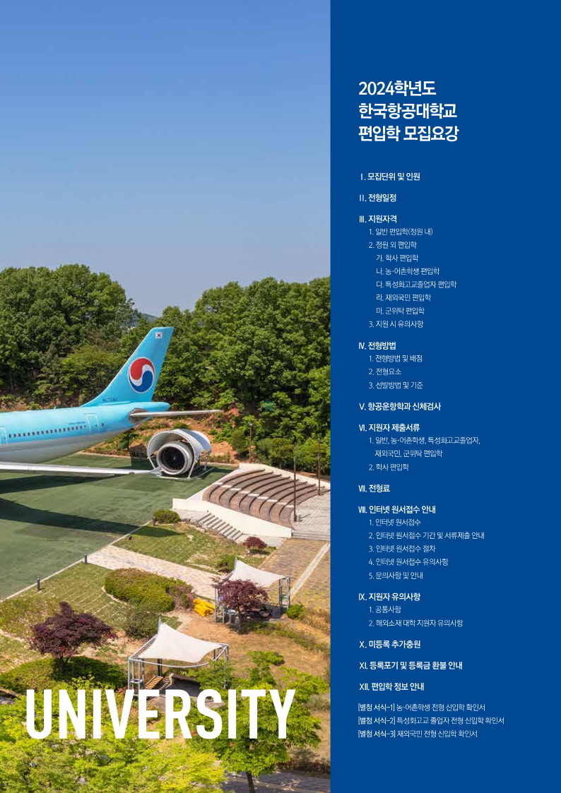 한국항공대 편입 2024학년도 모집요강 간편하게 보자! 2023.11.25 08:37 편입 모집요강/2024학년도 모집요강 2024학년도 한국항공대 편입 모집요강(2023.11.24 기준)을 간편하게 확인하세요. * 최종 모집요강 발표 이후에도 내용의 일부가 변경될 수 있으니 지원 전 반드시 한국항공대 입학처에서 확인하세요. ☞한국항공대 편입 최신 모집요강 확인하기☜ <출처: 한국항공대> 공유하기 게시글 관리 리치의 편입컨설팅 저작자표시 비영리 변경금지 (새창열림) '편입 모집요강 > 2024학년도 모집요강' 카테고리의 다른 글 수원대 편입 2024학년도 모집요강 간편하게 보자! (0) 2023.11.27 경기대 편입 2024학년도 모집요강 간편하게 보자! (0) 2023.11.27 명지대 편입 2024학년도 모집요강 간편하게 보자! (0) 2023.11.25 국민대 편입 2024학년도 모집요강 간편하게 보자! (0) 2023.11.25 한국항공대 편입 2024학년도 모집요강 간편하게 보자! (0) 2023.11.23 댓글 공유하기 다른 글 댓글 이 글 공유하기 구독하기 구독하기 카카오톡 카카오톡 라인 라인 트위터 트위터 Facebook Facebook 카카오스토리 카카오스토리 밴드 밴드 네이버 블로그 네이버 블로그 Pocket Pocket Evernote Evernote 다른 글 수원대 편입 2024학년도 모집요강 간편하게 보자! 수원대 편입 2024학년도 모집요강 간편하게 보자! 2023.11.27 경기대 편입 2024학년도 모집요강 간편하게 보자! 경기대 편입 2024학년도 모집요강 간편하게 보자! 2023.11.27 명지대 편입 2024학년도 모집요강 간편하게 보자! 명지대 편입 2024학년도 모집요강 간편하게 보자! 2023.11.25 국민대 편입 2024학년도 모집요강 간편하게 보자! 국민대 편입 2024학년도 모집요강 간편하게 보자! 2023.11.25 다른 글 더 둘러보기