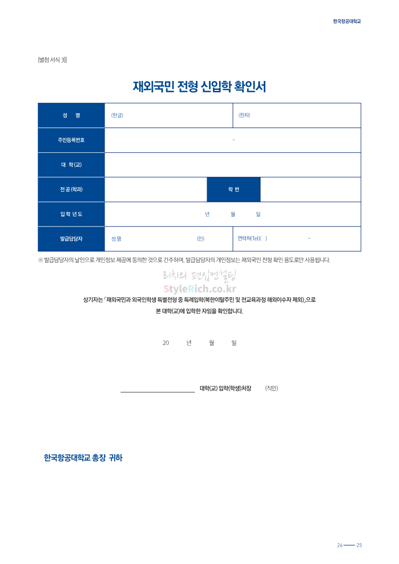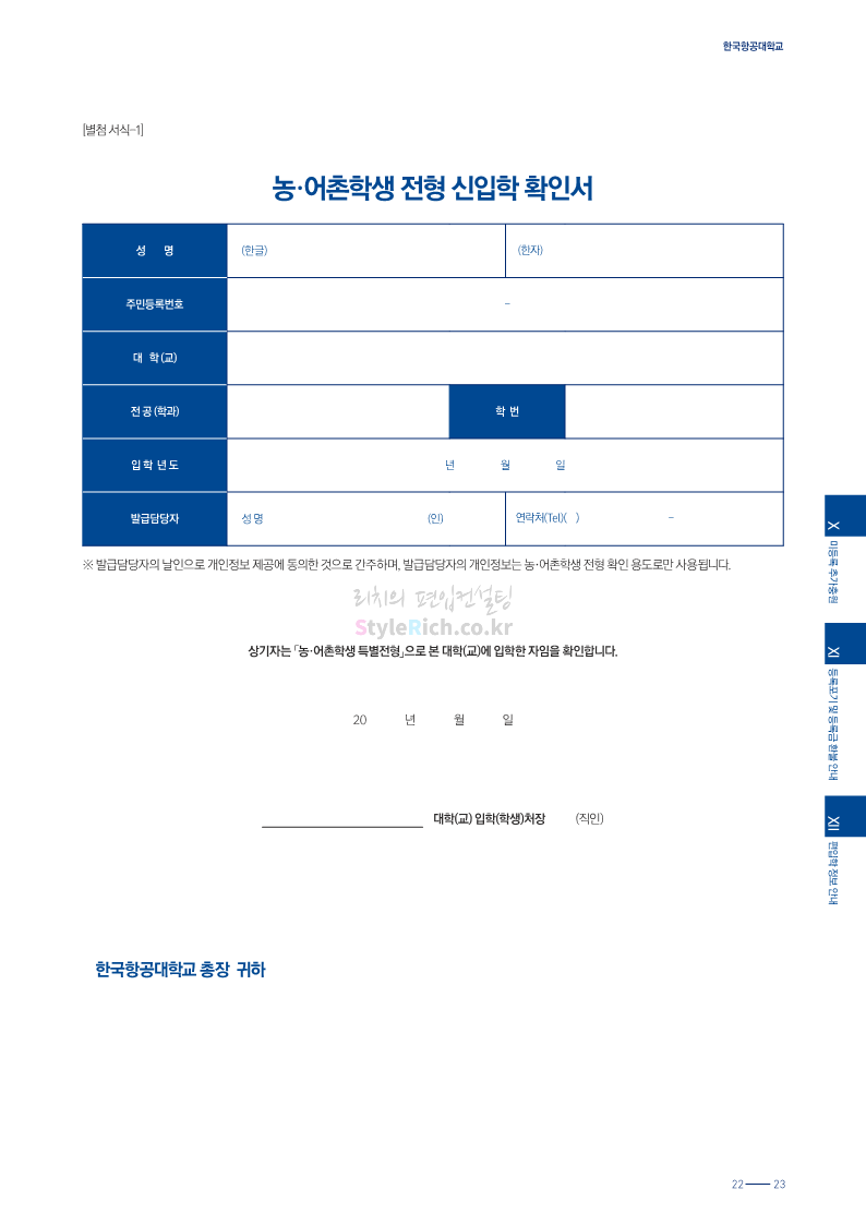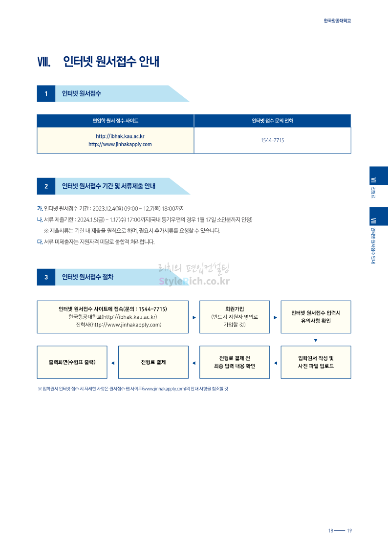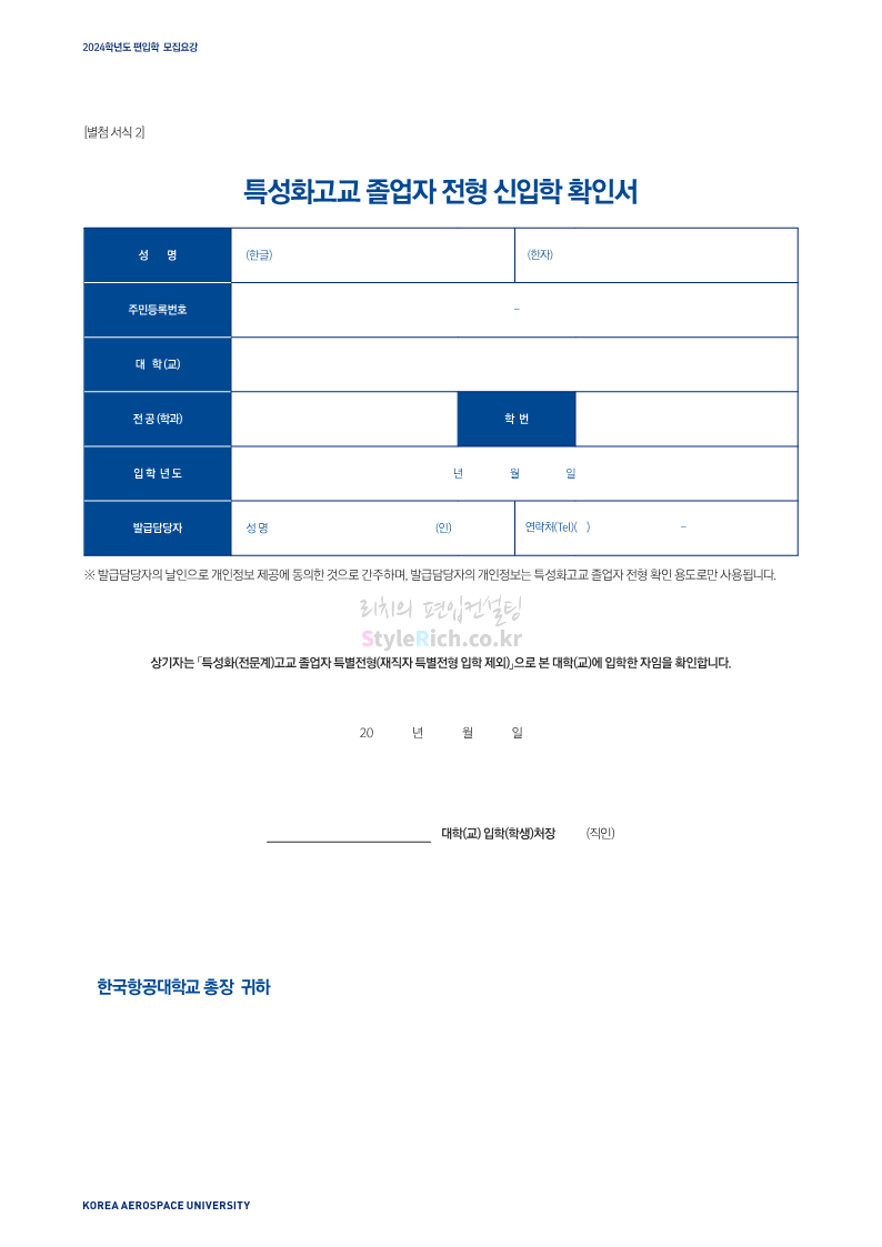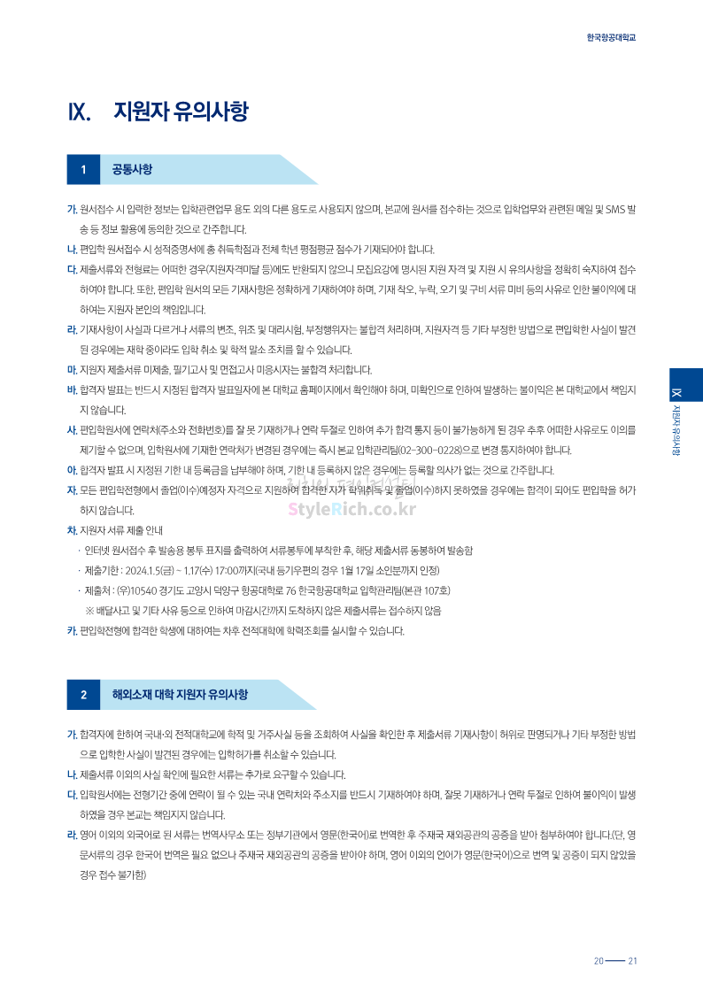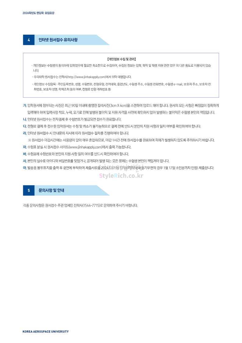 한국항공대 편입 2024학년도 모집요강 간편하게 보자! 2023.11.25 08:37 편입 모집요강/2024학년도 모집요강 2024학년도 한국항공대 편입 모집요강(2023.11.24 기준)을 간편하게 확인하세요. * 최종 모집요강 발표 이후에도 내용의 일부가 변경될 수 있으니 지원 전 반드시 한국항공대 입학처에서 확인하세요. ☞한국항공대 편입 최신 모집요강 확인하기☜ <출처: 한국항공대> 공유하기 게시글 관리 리치의 편입컨설팅 저작자표시 비영리 변경금지 (새창열림) '편입 모집요강 > 2024학년도 모집요강' 카테고리의 다른 글 수원대 편입 2024학년도 모집요강 간편하게 보자! (0) 2023.11.27 경기대 편입 2024학년도 모집요강 간편하게 보자! (0) 2023.11.27 명지대 편입 2024학년도 모집요강 간편하게 보자! (0) 2023.11.25 국민대 편입 2024학년도 모집요강 간편하게 보자! (0) 2023.11.25 한국항공대 편입 2024학년도 모집요강 간편하게 보자! (0) 2023.11.23 댓글 공유하기 다른 글 댓글 이 글 공유하기 구독하기 구독하기 카카오톡 카카오톡 라인 라인 트위터 트위터 Facebook Facebook 카카오스토리 카카오스토리 밴드 밴드 네이버 블로그 네이버 블로그 Pocket Pocket Evernote Evernote 다른 글 수원대 편입 2024학년도 모집요강 간편하게 보자! 수원대 편입 2024학년도 모집요강 간편하게 보자! 2023.11.27 경기대 편입 2024학년도 모집요강 간편하게 보자! 경기대 편입 2024학년도 모집요강 간편하게 보자! 2023.11.27 명지대 편입 2024학년도 모집요강 간편하게 보자! 명지대 편입 2024학년도 모집요강 간편하게 보자! 2023.11.25 국민대 편입 2024학년도 모집요강 간편하게 보자! 국민대 편입 2024학년도 모집요강 간편하게 보자! 2023.11.25 다른 글 더 둘러보기