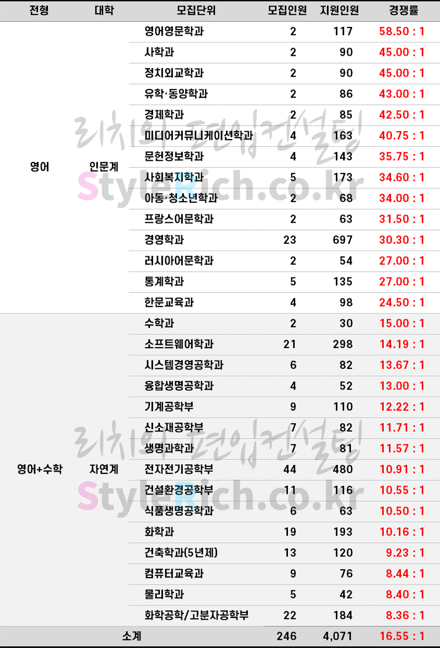 모집요강,경쟁률,합격점수,추가합격 등 편입정보 제공