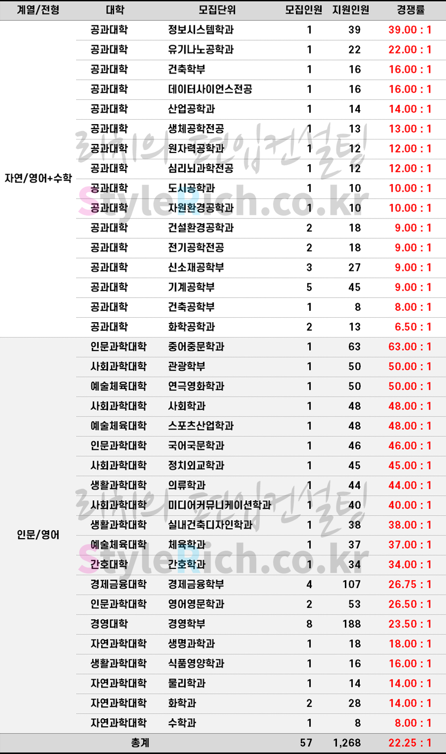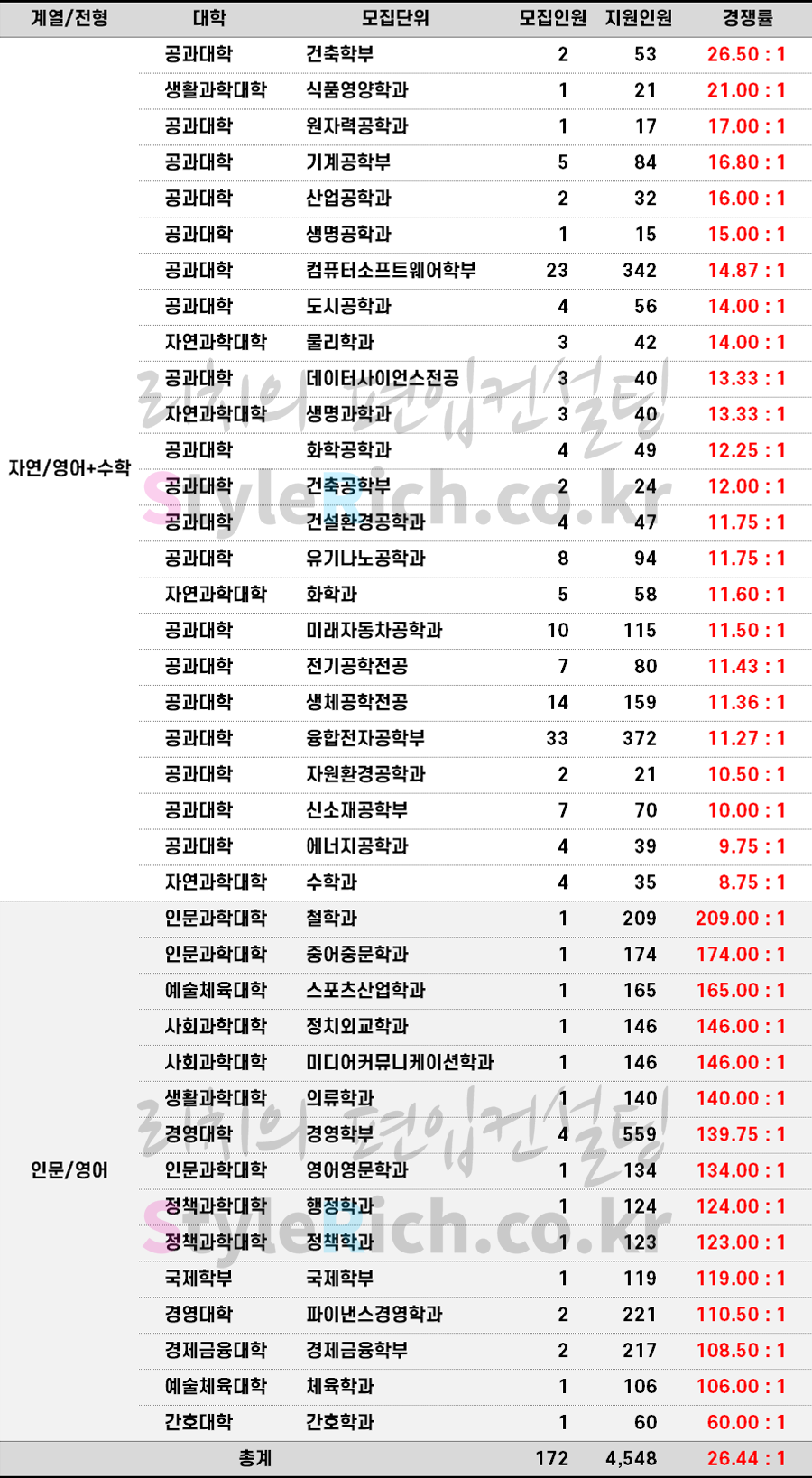 * 계열/전형으로 분류 후 경쟁률이 높은 순으로 정렬