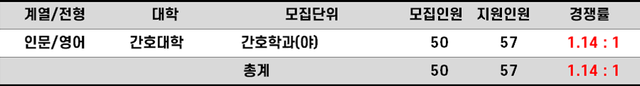 2023학년도 한양대 간호학과(야)편입 경쟁률 현황