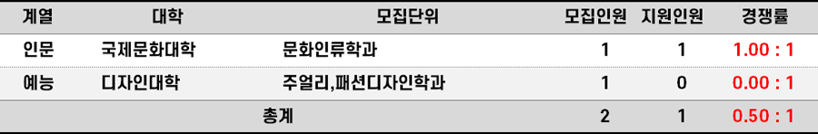 2023학년도 한양대(에리카) 재외국민과외국인편입 경쟁률 현황