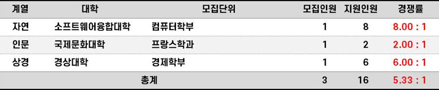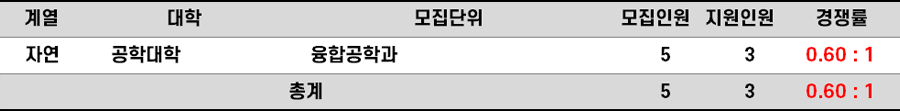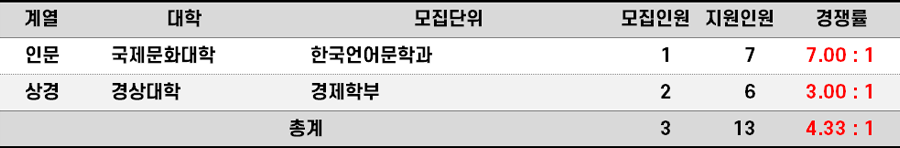 2023학년도 한양대(에리카) 새터민편입 경쟁률 현황