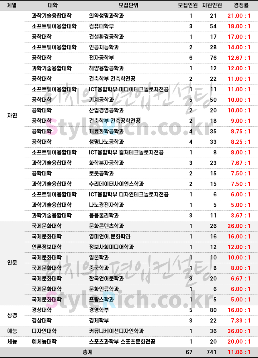 2023학년도 한양대(에리카) 편입 경쟁률을 살펴보겠습니다.