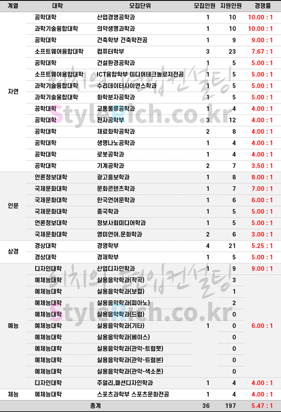 2023학년도 한양대(에리카) 재외국민과외국인편입 경쟁률 현황