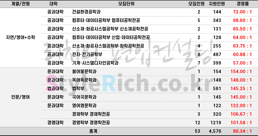 *계열/전형으로 분류 후 경쟁률이 높은 순으로 정렬