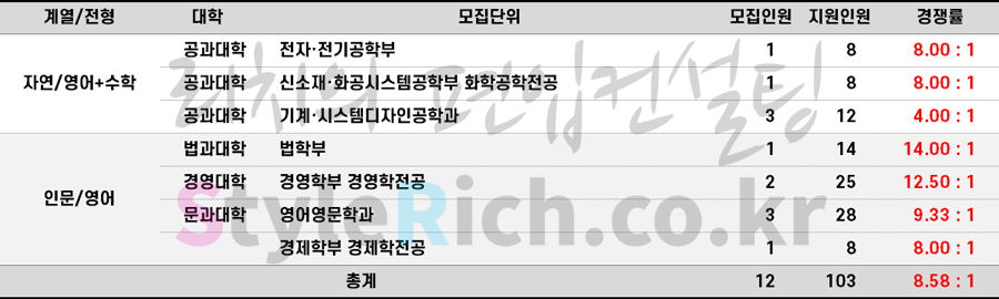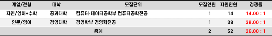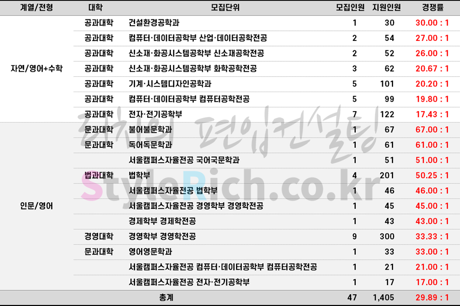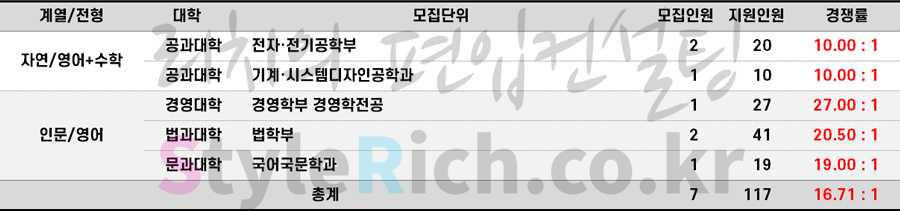 2023학년도 홍익대 재외국민편입 경쟁률 현황