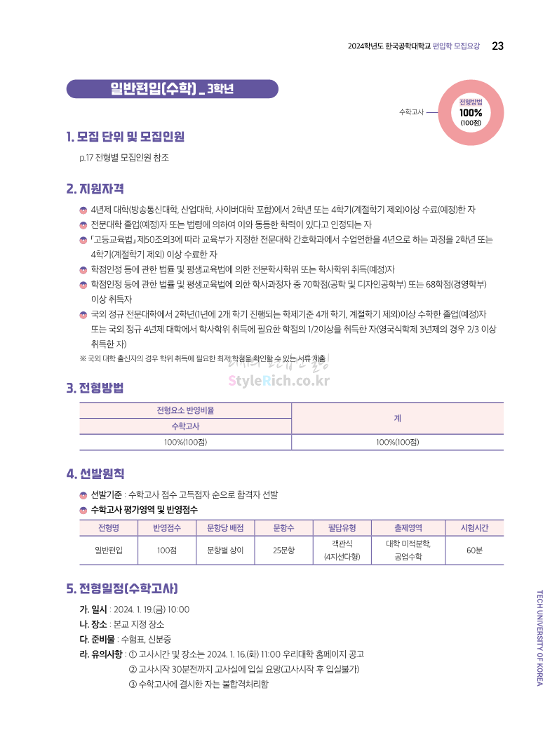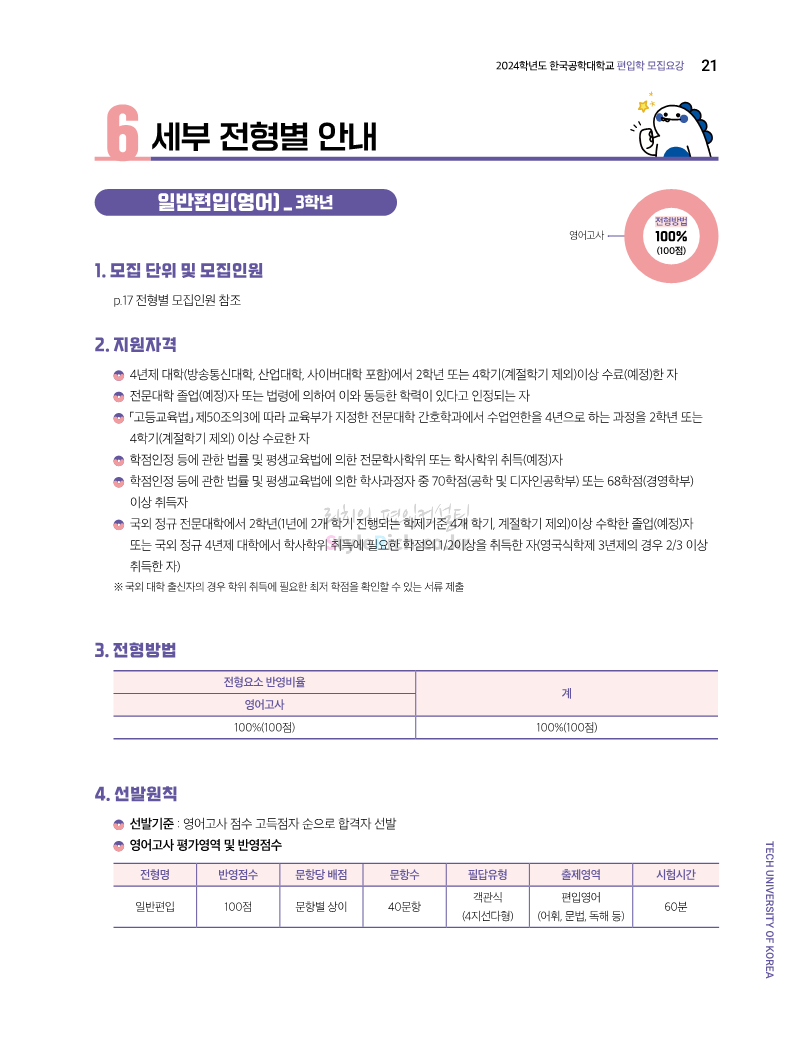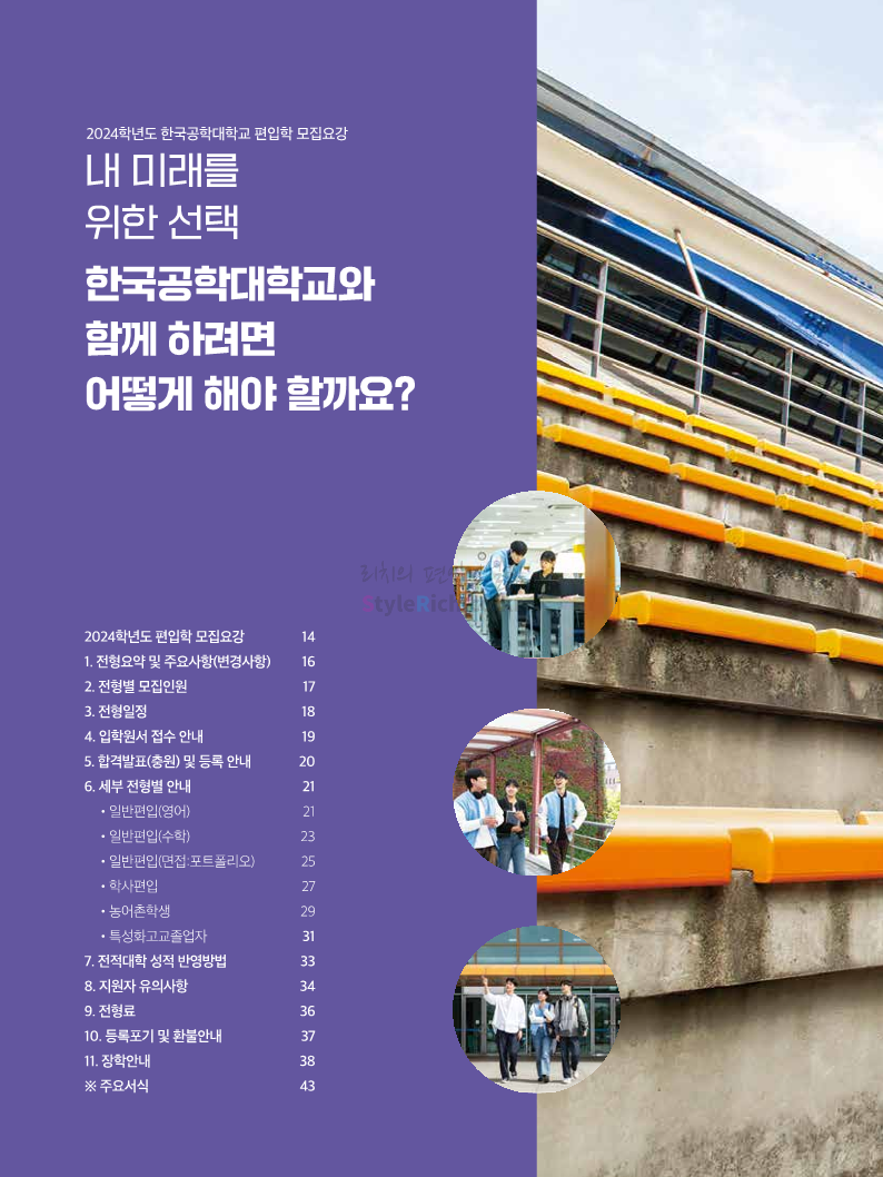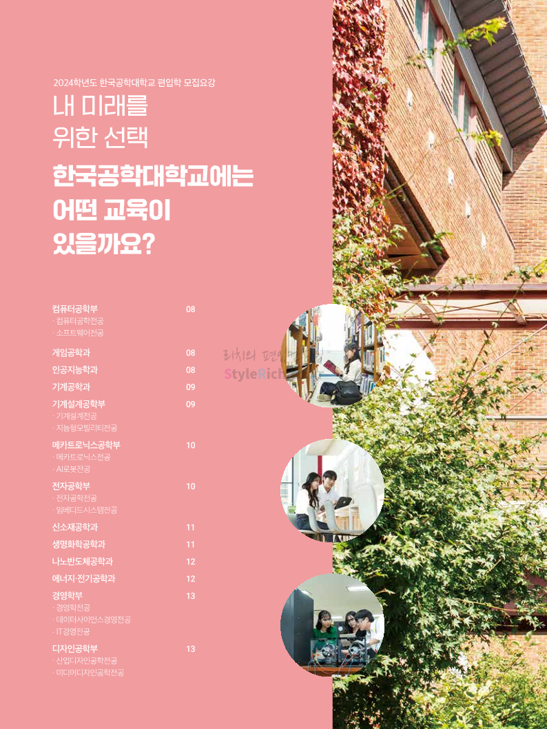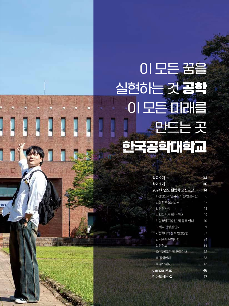 한국공학대 편입 2024학년도 모집요강 간편하게 보자! 2023.11.27 23:45 편입 모집요강/2024학년도 모집요강 2024학년도 한국공학대 편입 모집요강(2023.11.27 기준)을 간편하게 확인하세요. * 최종 모집요강 발표 이후에도 내용의 일부가 변경될 수 있으니 지원 전 반드시 한국공학대 입학처에서 확인하세요. ☞한국공학대 편입 최신 모집요강 확인하기 ☜ <출처: 한국공학대> 공유하기 게시글 관리 리치의 편입컨설팅 저작자표시 비영리 변경금지 (새창열림) '편입 모집요강 > 2024학년도 모집요강' 카테고리의 다른 글 아주대 편입 2024학년도 모집요강 간편하게 보자! (0) 2023.11.29 고려대 편입 2024학년도 모집요강 간편하게 보자! (0) 2023.11.29 수원대 편입 2024학년도 모집요강 간편하게 보자! (0) 2023.11.27 경기대 편입 2024학년도 모집요강 간편하게 보자! (0) 2023.11.27 한국항공대 편입 2024학년도 모집요강 간편하게 보자! (0) 2023.11.25 댓글 공유하기 다른 글 댓글 이 글 공유하기 구독하기 구독하기 카카오톡 카카오톡 라인 라인 트위터 트위터 Facebook Facebook 카카오스토리 카카오스토리 밴드 밴드 네이버 블로그 네이버 블로그 Pocket Pocket Evernote Evernote 다른 글 아주대 편입 2024학년도 모집요강 간편하게 보자! 아주대 편입 2024학년도 모집요강 간편하게 보자! 2023.11.29 고려대 편입 2024학년도 모집요강 간편하게 보자! 고려대 편입 2024학년도 모집요강 간편하게 보자! 2023.11.29 수원대 편입 2024학년도 모집요강 간편하게 보자! 수원대 편입 2024학년도 모집요강 간편하게 보자! 2023.11.27 경기대 편입 2024학년도 모집요강 간편하게 보자! 경기대 편입 2024학년도 모집요강 간편하게 보자! 2023.11.27 다른 글 더 둘러보기