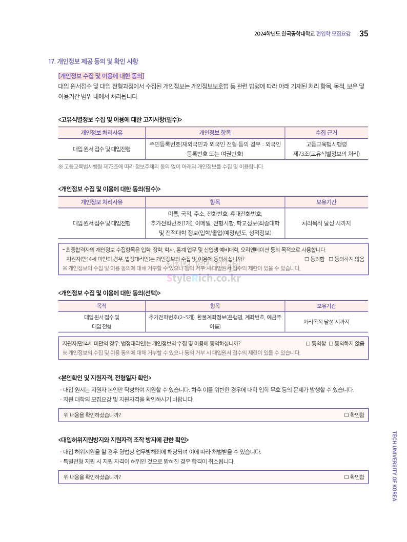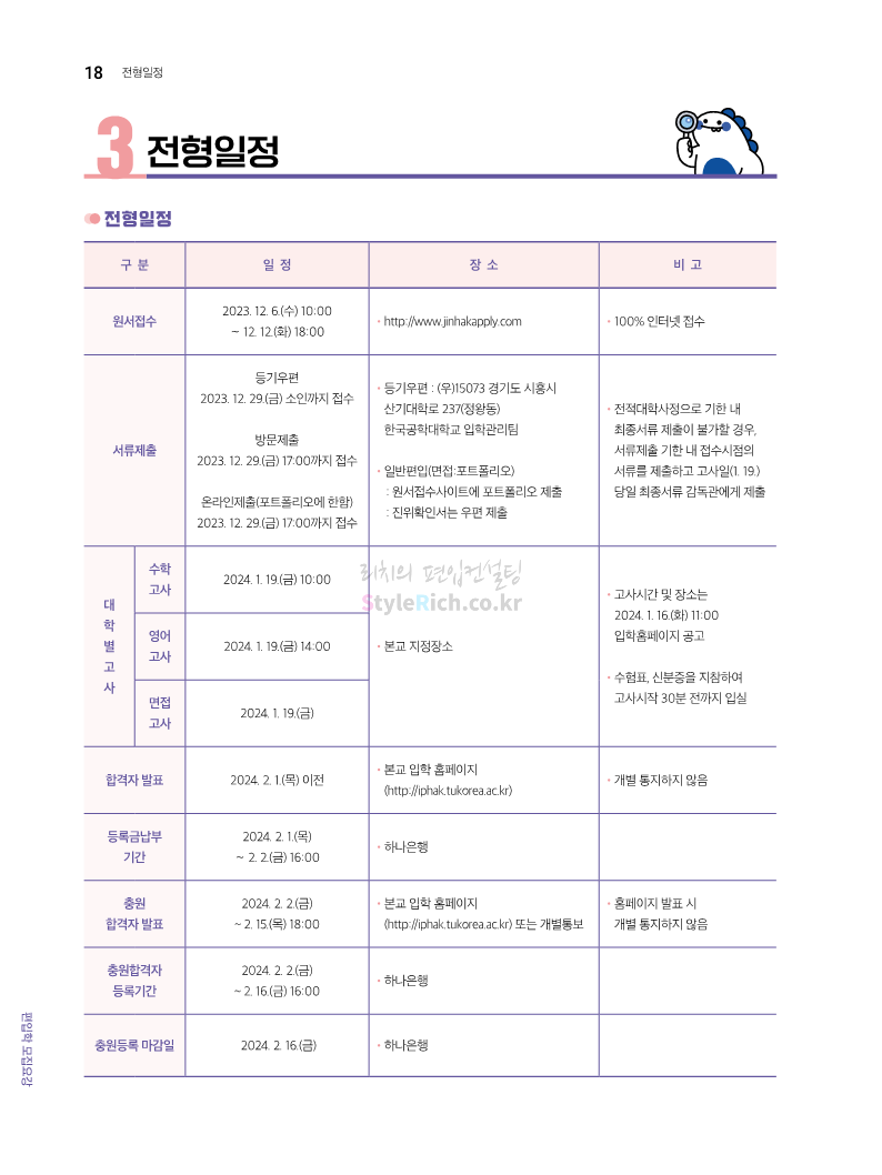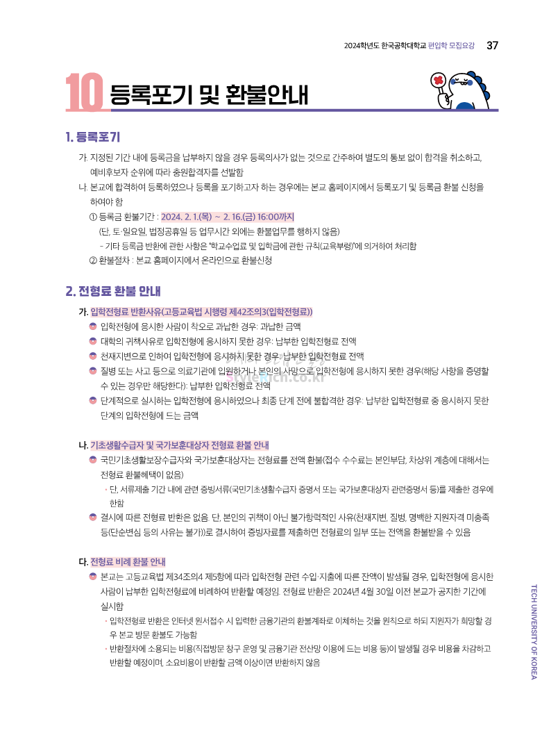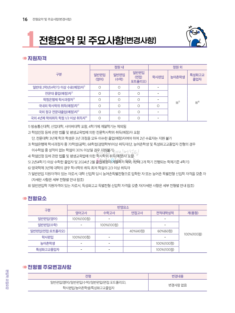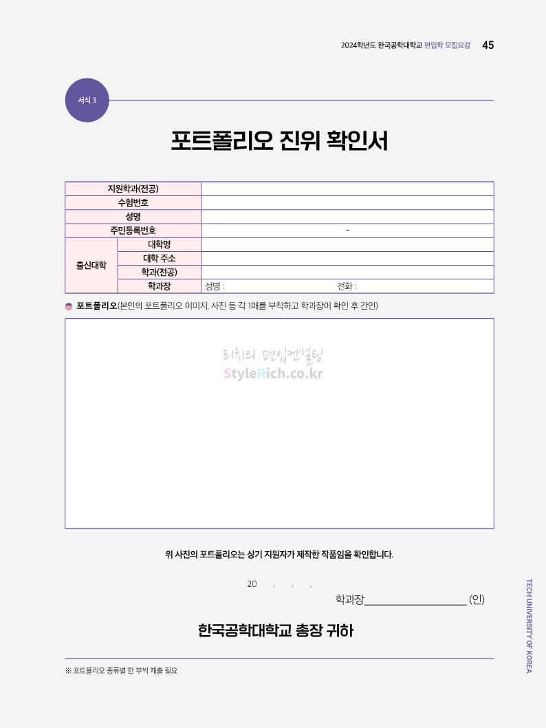 한국공학대 편입 2024학년도 모집요강 간편하게 보자! 2023.11.27 23:45 편입 모집요강/2024학년도 모집요강 2024학년도 한국공학대 편입 모집요강(2023.11.27 기준)을 간편하게 확인하세요. * 최종 모집요강 발표 이후에도 내용의 일부가 변경될 수 있으니 지원 전 반드시 한국공학대 입학처에서 확인하세요. ☞한국공학대 편입 최신 모집요강 확인하기 ☜ <출처: 한국공학대> 공유하기 게시글 관리 리치의 편입컨설팅 저작자표시 비영리 변경금지 (새창열림) '편입 모집요강 > 2024학년도 모집요강' 카테고리의 다른 글 아주대 편입 2024학년도 모집요강 간편하게 보자! (0) 2023.11.29 고려대 편입 2024학년도 모집요강 간편하게 보자! (0) 2023.11.29 수원대 편입 2024학년도 모집요강 간편하게 보자! (0) 2023.11.27 경기대 편입 2024학년도 모집요강 간편하게 보자! (0) 2023.11.27 한국항공대 편입 2024학년도 모집요강 간편하게 보자! (0) 2023.11.25 댓글 공유하기 다른 글 댓글 이 글 공유하기 구독하기 구독하기 카카오톡 카카오톡 라인 라인 트위터 트위터 Facebook Facebook 카카오스토리 카카오스토리 밴드 밴드 네이버 블로그 네이버 블로그 Pocket Pocket Evernote Evernote 다른 글 아주대 편입 2024학년도 모집요강 간편하게 보자! 아주대 편입 2024학년도 모집요강 간편하게 보자! 2023.11.29 고려대 편입 2024학년도 모집요강 간편하게 보자! 고려대 편입 2024학년도 모집요강 간편하게 보자! 2023.11.29 수원대 편입 2024학년도 모집요강 간편하게 보자! 수원대 편입 2024학년도 모집요강 간편하게 보자! 2023.11.27 경기대 편입 2024학년도 모집요강 간편하게 보자! 경기대 편입 2024학년도 모집요강 간편하게 보자! 2023.11.27 다른 글 더 둘러보기