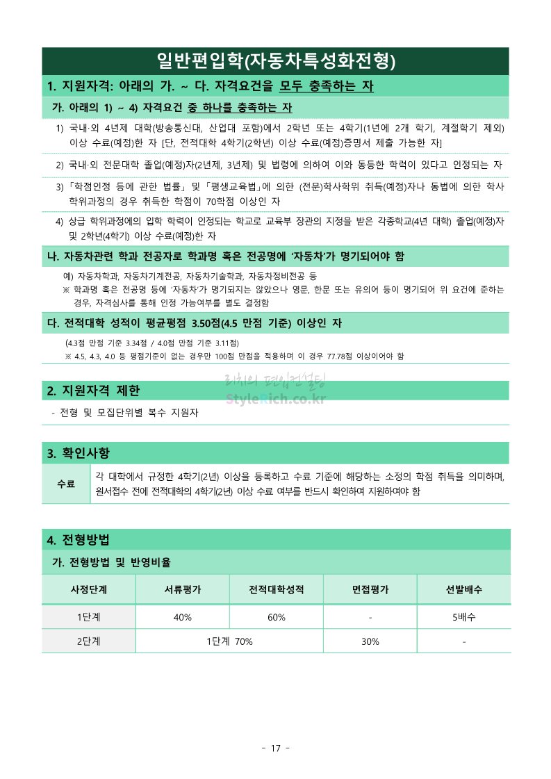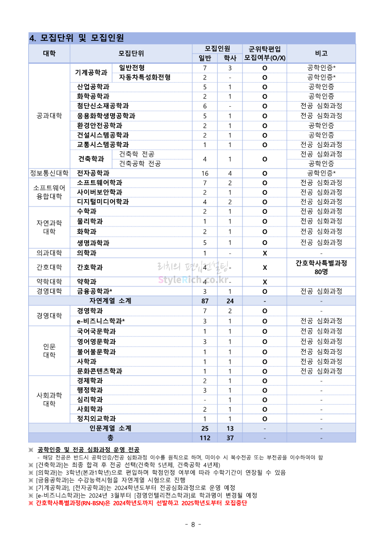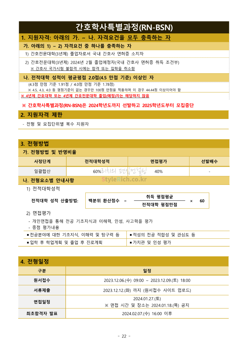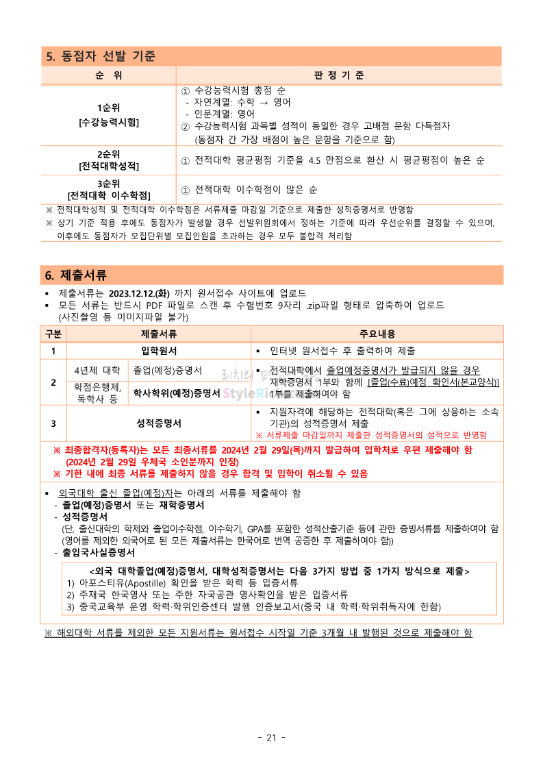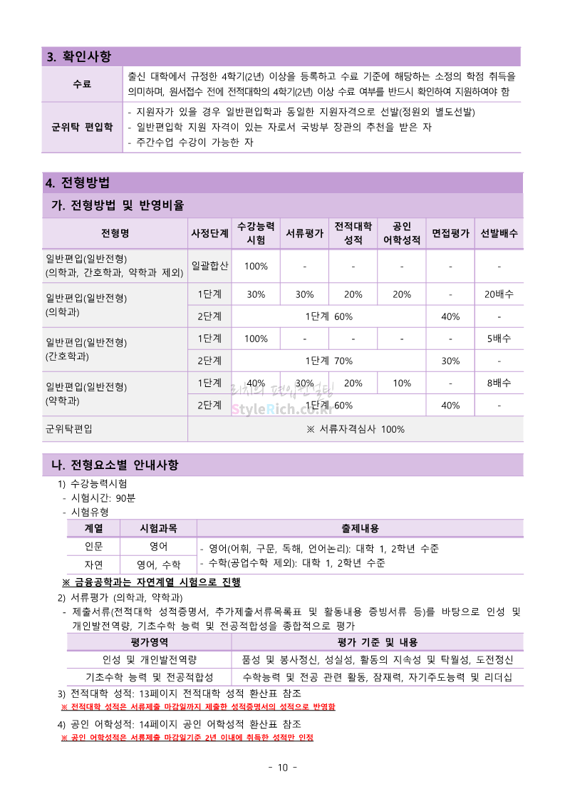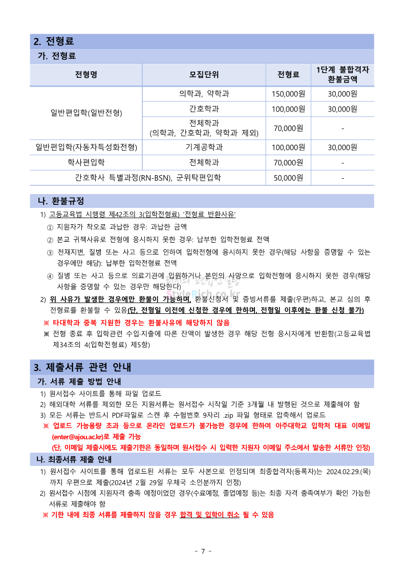 아주대 편입 2024학년도 모집요강 간편하게 보자! 2023.11.29 02:29 편입 모집요강/2024학년도 모집요강 2024학년도 아주대 편입 모집요강(2023.11.28 기준)을 간편하게 확인하세요. * 최종 모집요강 발표 이후에도 내용의 일부가 변경될 수 있으니 지원 전 반드시 아주대 입학처에서 확인하세요. ☞아주대 편입 최신 모집요강 확인하기☜ <출처: 아주대> 공유하기 게시글 관리 리치의 편입컨설팅 저작자표시 비영리 변경금지 (새창열림) '편입 모집요강 > 2024학년도 모집요강' 카테고리의 다른 글 경희대 편입 2024학년도 모집요강 간편하게 보자! (0) 2023.11.30 연세대 편입 2024학년도 모집요강 간편하게 보자! (0) 2023.11.29 고려대 편입 2024학년도 모집요강 간편하게 보자! (0) 2023.11.29 한국공학대 편입 2024학년도 모집요강 간편하게 보자! (0) 2023.11.27 수원대 편입 2024학년도 모집요강 간편하게 보자! (0) 2023.11.27 댓글 공유하기 다른 글 댓글 이 글 공유하기 구독하기 구독하기 카카오톡 카카오톡 라인 라인 트위터 트위터 Facebook Facebook 카카오스토리 카카오스토리 밴드 밴드 네이버 블로그 네이버 블로그 Pocket Pocket Evernote Evernote 다른 글 경희대 편입 2024학년도 모집요강 간편하게 보자! 경희대 편입 2024학년도 모집요강 간편하게 보자! 2023.11.30 연세대 편입 2024학년도 모집요강 간편하게 보자! 연세대 편입 2024학년도 모집요강 간편하게 보자! 2023.11.29 고려대 편입 2024학년도 모집요강 간편하게 보자! 고려대 편입 2024학년도 모집요강 간편하게 보자! 2023.11.29 한국공학대 편입 2024학년도 모집요강 간편하게 보자! 한국공학대 편입 2024학년도 모집요강 간편하게 보자! 2023.11.27 다른 글 더 둘러보기