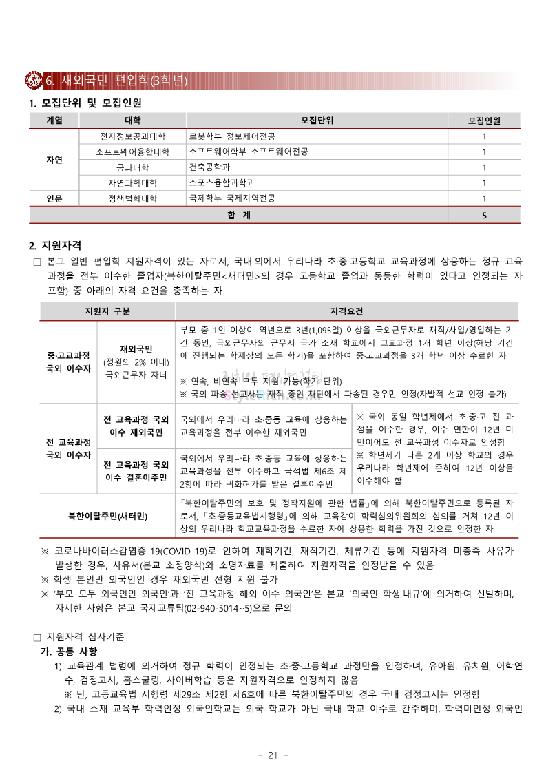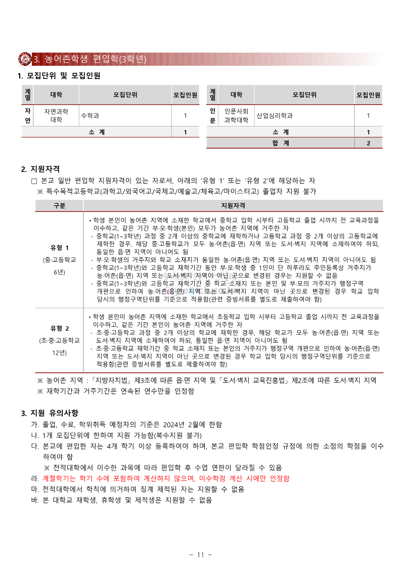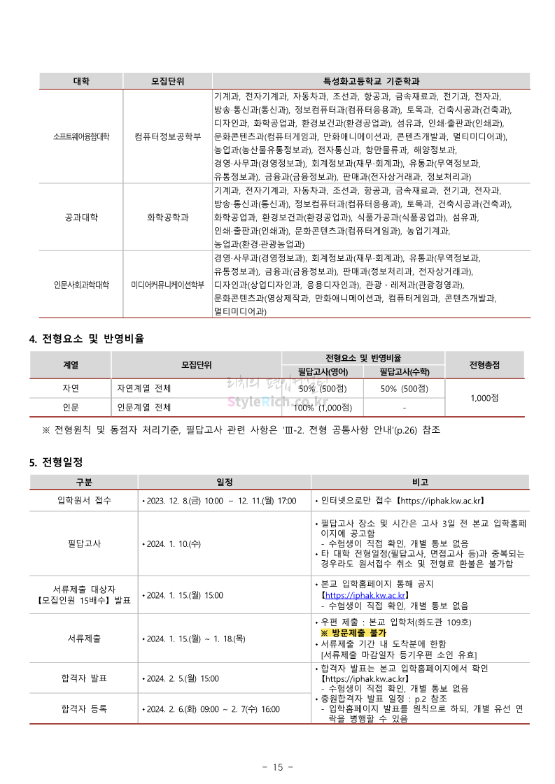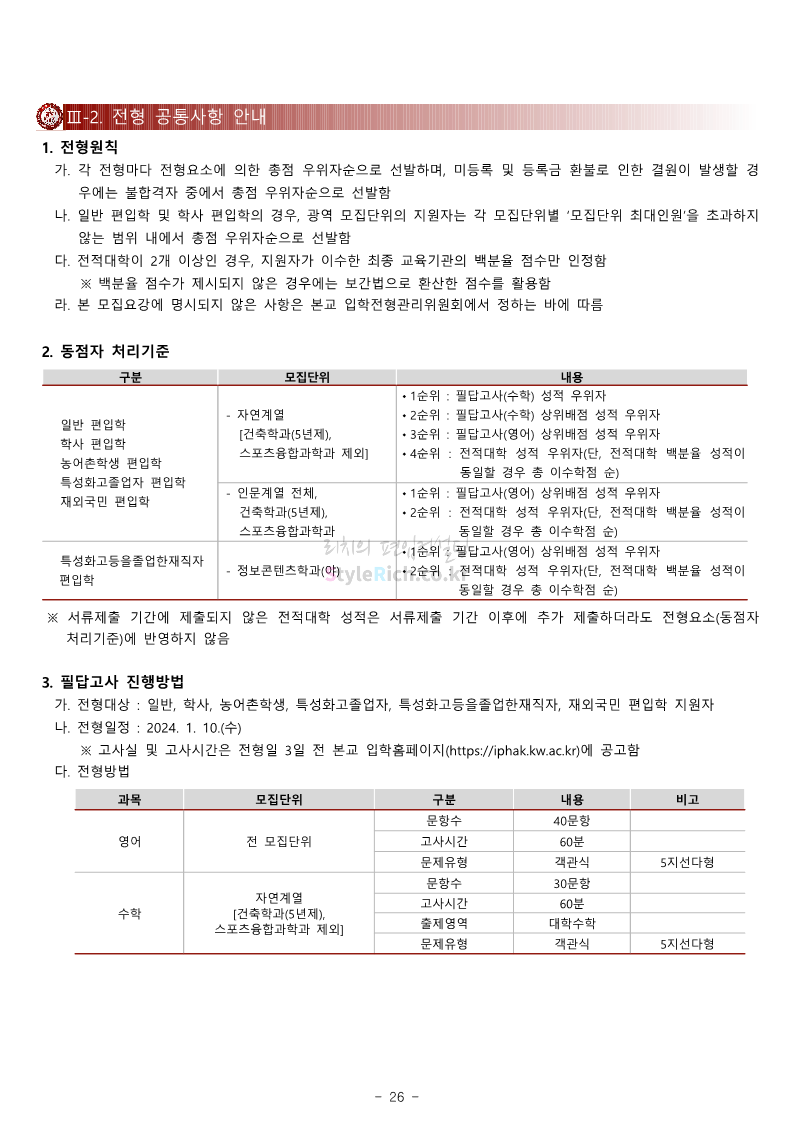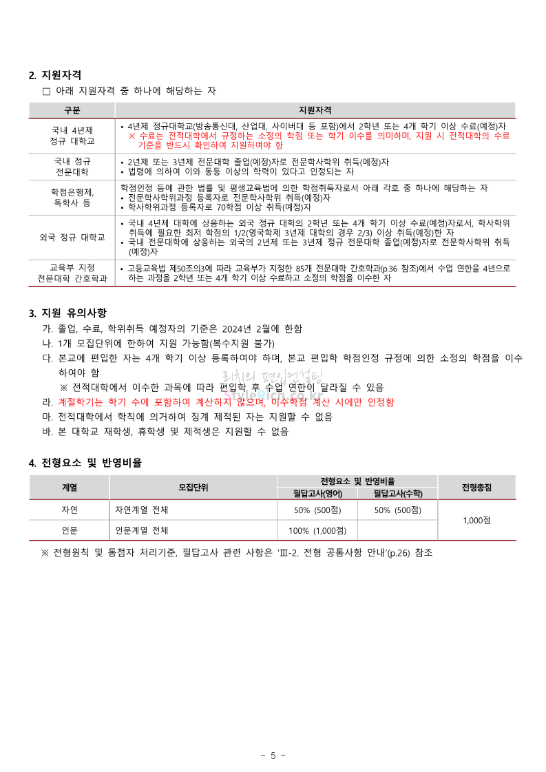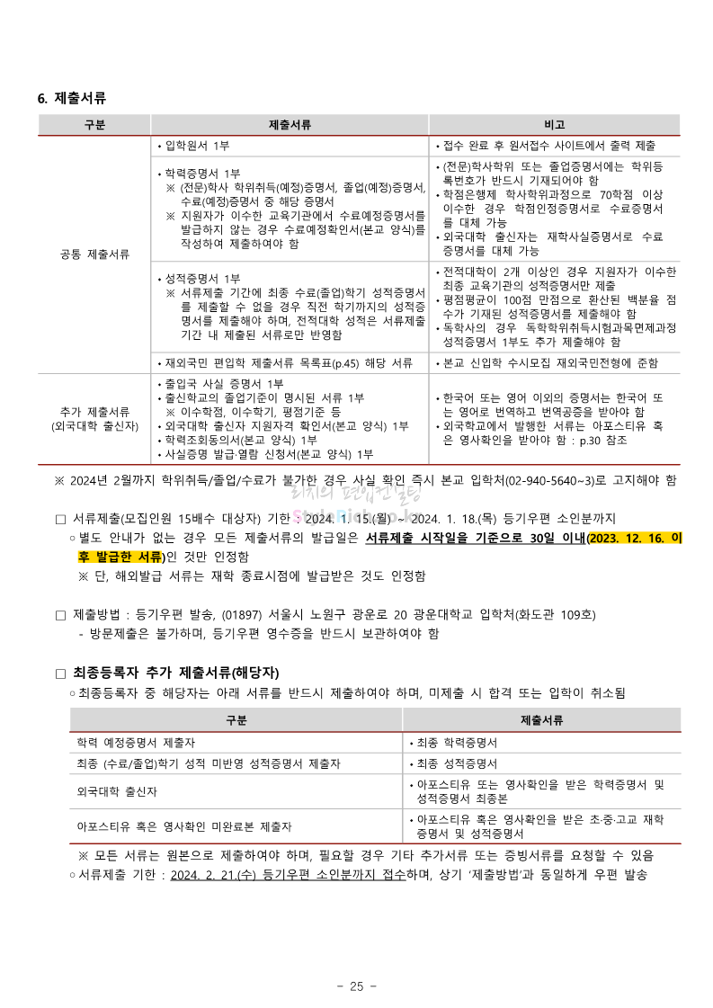 광운대 편입 2024학년도 모집요강 간편하게 보자! 2023.12.02 01:03 편입 모집요강/2024학년도 모집요강 2024학년도 광운대 편입 모집요강(2023.11.30 기준)을 간편하게 확인하세요. * 최종 모집요강 발표 이후에도 내용의 일부가 변경될 수 있으니 지원 전 반드시 광운대 입학처에서 확인하세요. ☞광운대 편입 최신 모집요강 확인하기 ☜ <출처: 광운대> 공유하기 게시글 관리 리치의 편입컨설팅 저작자표시 비영리 변경금지 (새창열림) '편입 모집요강 > 2024학년도 모집요강' 카테고리의 다른 글 상명대 편입 2024학년도 모집요강 간편하게 보자! (0) 2023.12.02 동국대 편입 2024학년도 모집요강 간편하게 보자! (0) 2023.12.02 가톨릭대 편입 2024학년도 모집요강 간편하게 보자! (0) 2023.12.02 숭실대 편입 2024학년도 모집요강 간편하게 보자! (0) 2023.11.30 경희대 편입 2024학년도 모집요강 간편하게 보자! (0) 2023.11.30 댓글 공유하기 다른 글 댓글 이 글 공유하기 구독하기 구독하기 카카오톡 카카오톡 라인 라인 트위터 트위터 Facebook Facebook 카카오스토리 카카오스토리 밴드 밴드 네이버 블로그 네이버 블로그 Pocket Pocket Evernote Evernote 다른 글 상명대 편입 2024학년도 모집요강 간편하게 보자! 상명대 편입 2024학년도 모집요강 간편하게 보자! 2023.12.02 동국대 편입 2024학년도 모집요강 간편하게 보자! 동국대 편입 2024학년도 모집요강 간편하게 보자! 2023.12.02 가톨릭대 편입 2024학년도 모집요강 간편하게 보자! 가톨릭대 편입 2024학년도 모집요강 간편하게 보자! 2023.12.02 숭실대 편입 2024학년도 모집요강 간편하게 보자! 숭실대 편입 2024학년도 모집요강 간편하게 보자! 2023.11.30 다른 글 더 둘러보기