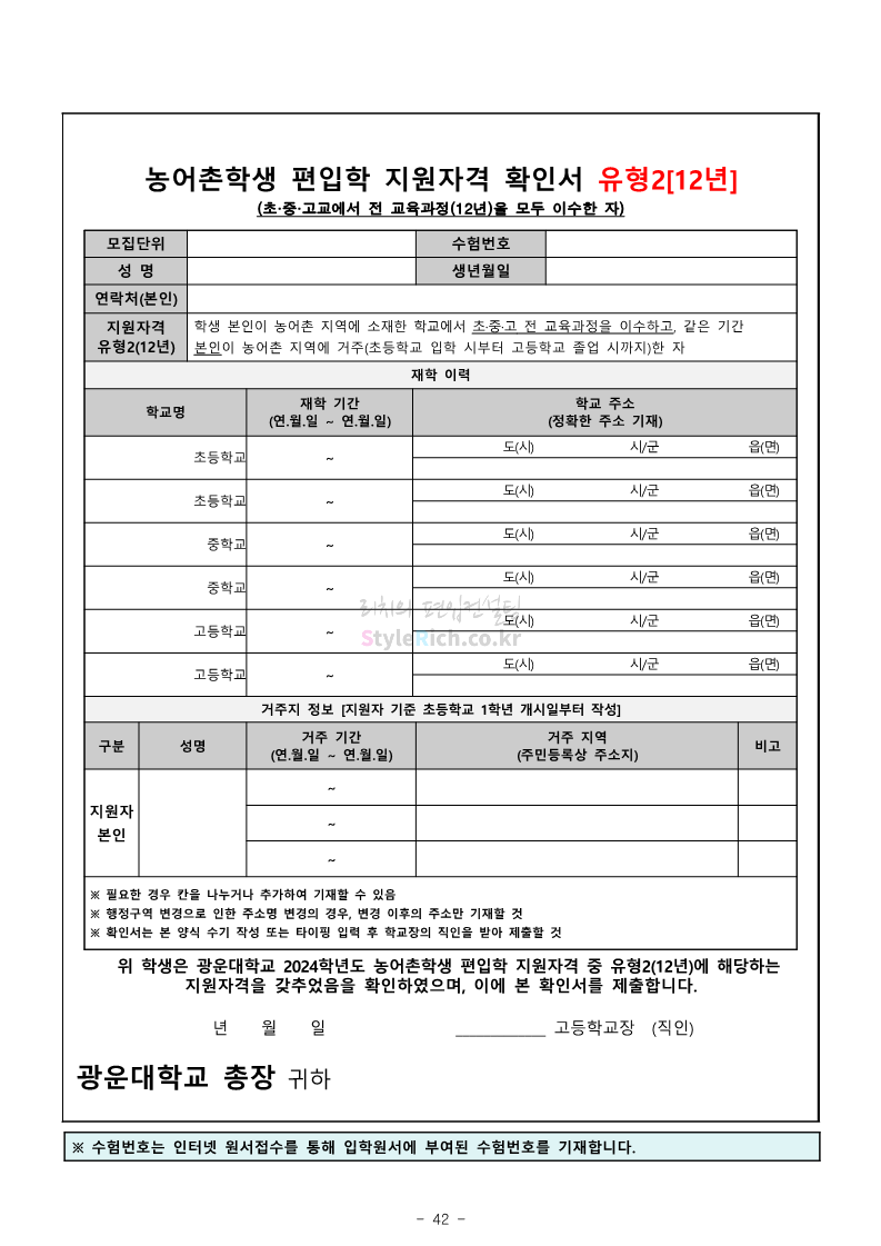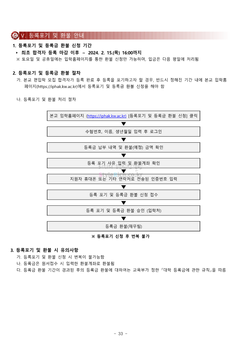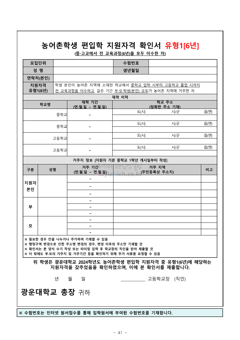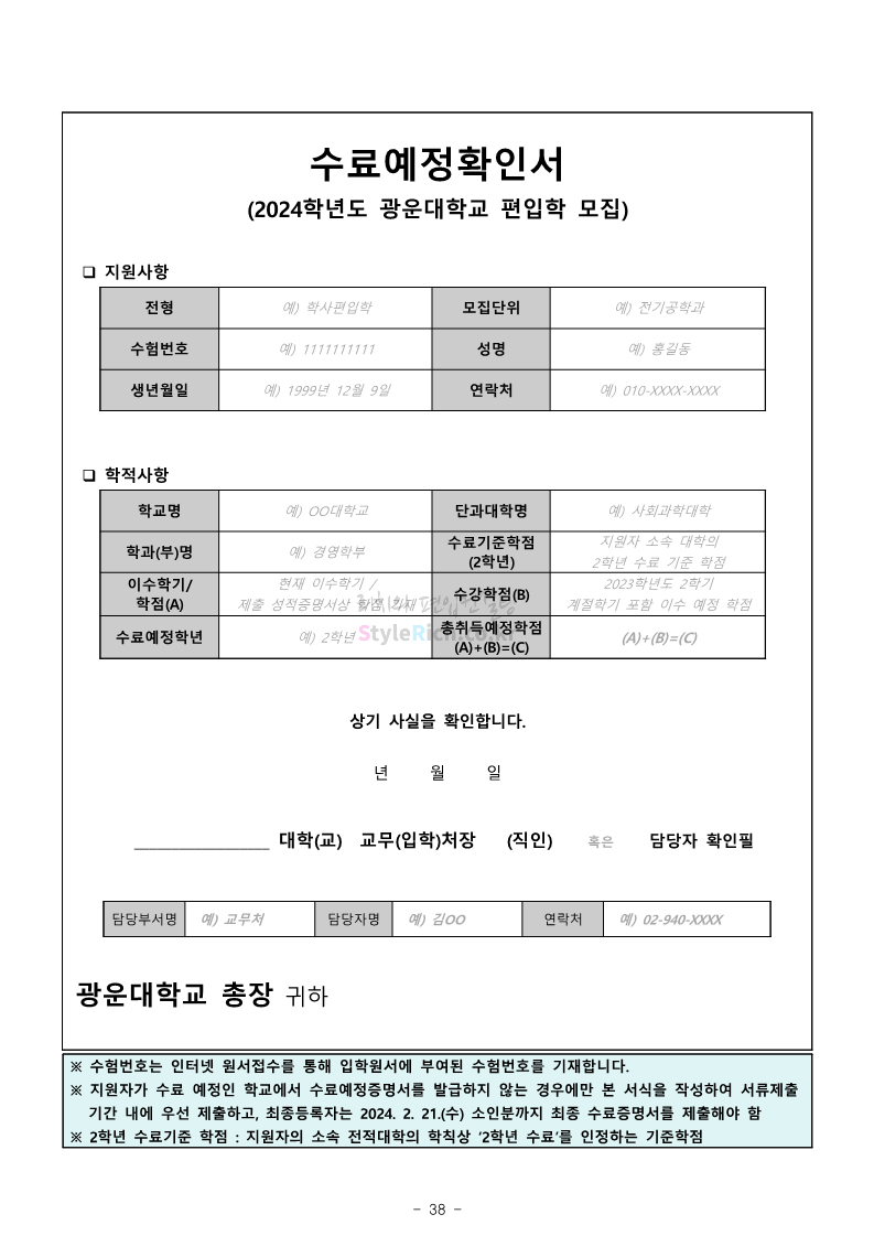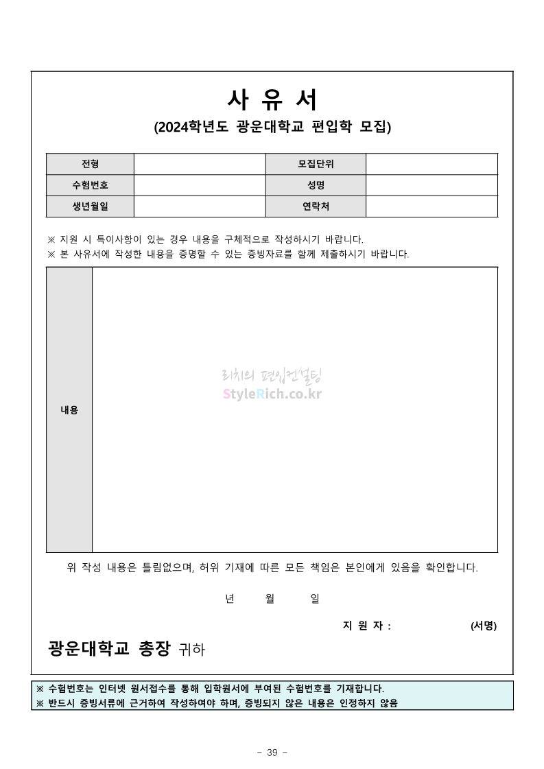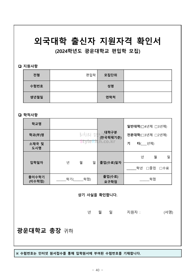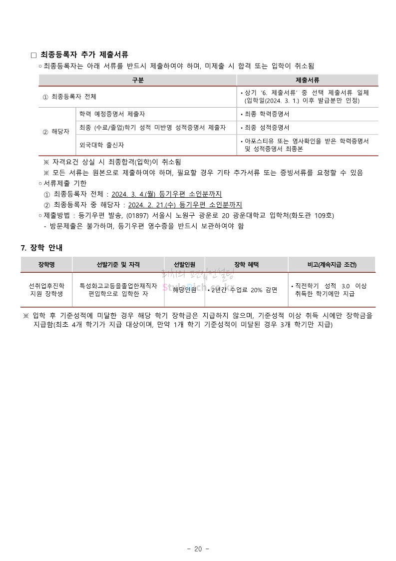 광운대 편입 2024학년도 모집요강 간편하게 보자! 2023.12.02 01:03 편입 모집요강/2024학년도 모집요강 2024학년도 광운대 편입 모집요강(2023.11.30 기준)을 간편하게 확인하세요. * 최종 모집요강 발표 이후에도 내용의 일부가 변경될 수 있으니 지원 전 반드시 광운대 입학처에서 확인하세요. ☞광운대 편입 최신 모집요강 확인하기 ☜ <출처: 광운대> 공유하기 게시글 관리 리치의 편입컨설팅 저작자표시 비영리 변경금지 (새창열림) '편입 모집요강 > 2024학년도 모집요강' 카테고리의 다른 글 상명대 편입 2024학년도 모집요강 간편하게 보자! (0) 2023.12.02 동국대 편입 2024학년도 모집요강 간편하게 보자! (0) 2023.12.02 가톨릭대 편입 2024학년도 모집요강 간편하게 보자! (0) 2023.12.02 숭실대 편입 2024학년도 모집요강 간편하게 보자! (0) 2023.11.30 경희대 편입 2024학년도 모집요강 간편하게 보자! (0) 2023.11.30 댓글 공유하기 다른 글 댓글 이 글 공유하기 구독하기 구독하기 카카오톡 카카오톡 라인 라인 트위터 트위터 Facebook Facebook 카카오스토리 카카오스토리 밴드 밴드 네이버 블로그 네이버 블로그 Pocket Pocket Evernote Evernote 다른 글 상명대 편입 2024학년도 모집요강 간편하게 보자! 상명대 편입 2024학년도 모집요강 간편하게 보자! 2023.12.02 동국대 편입 2024학년도 모집요강 간편하게 보자! 동국대 편입 2024학년도 모집요강 간편하게 보자! 2023.12.02 가톨릭대 편입 2024학년도 모집요강 간편하게 보자! 가톨릭대 편입 2024학년도 모집요강 간편하게 보자! 2023.12.02 숭실대 편입 2024학년도 모집요강 간편하게 보자! 숭실대 편입 2024학년도 모집요강 간편하게 보자! 2023.11.30 다른 글 더 둘러보기