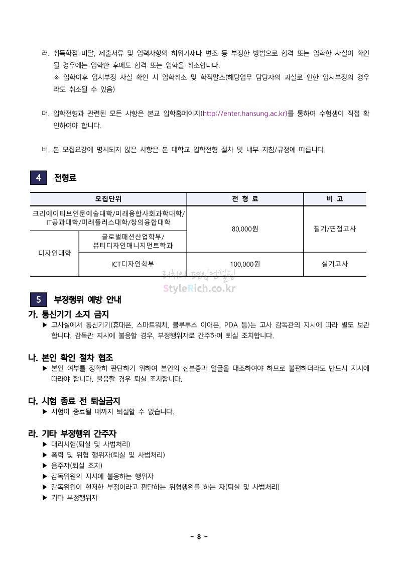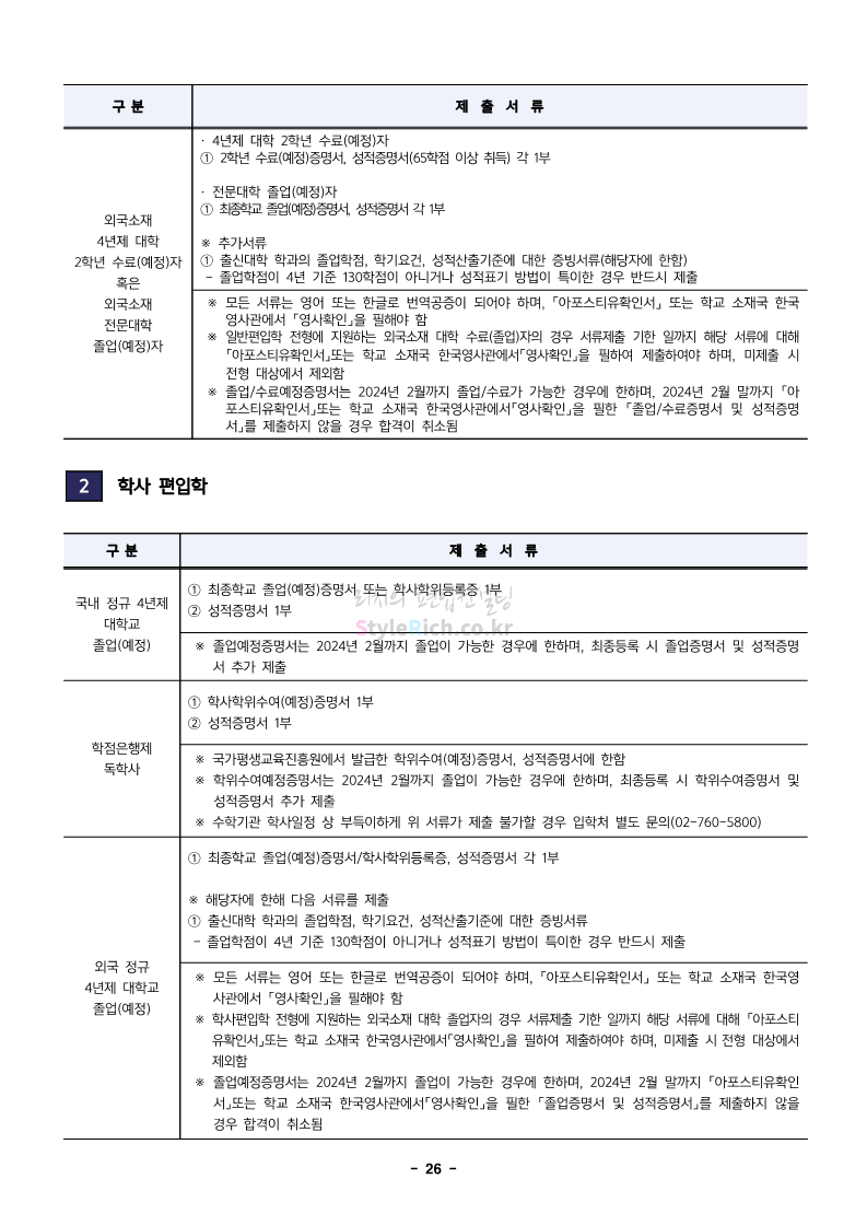 한성대 편입 2024학년도 모집요강 간편하게 보자! 2023.12.09 03:50 편입 모집요강/2024학년도 모집요강 2024학년도 한성대 편입 모집요강(2023.12.08 기준)을 간편하게 확인하세요. * 최종 모집요강 발표 이후에도 내용의 일부가 변경될 수 있으니 지원 전 반드시 한성대 입학처에서 확인하세요. ☞한성대 편입 최신 모집요강 확인하기☜ <출처: 한성대> 공유하기 게시글 관리 리치의 편입컨설팅 저작자표시 비영리 변경금지 (새창열림) '편입 모집요강 > 2024학년도 모집요강' 카테고리의 다른 글 한양대(에리카) 2024학년도 모집요강 간편하게 보자! (0) 2023.12.13 서강대 편입 2024학년도 모집요강 간편하게 보자! (0) 2023.12.11 한국외대 편입 2024학년도 모집요강 간편하게 보자! (0) 2023.12.09 서울여대 2024학년도 모집요강 간편하게 보자! (0) 2023.12.09 서경대 편입 2024학년도 모집요강 간편하게 보자! (0) 2023.12.09 댓글 공유하기 다른 글 댓글 이 글 공유하기 구독하기 구독하기 카카오톡 카카오톡 라인 라인 트위터 트위터 Facebook Facebook 카카오스토리 카카오스토리 밴드 밴드 네이버 블로그 네이버 블로그 Pocket Pocket Evernote Evernote 다른 글 한양대(에리카) 2024학년도 모집요강 간편하게 보자! 한양대(에리카) 2024학년도 모집요강 간편하게 보자! 2023.12.13 서강대 편입 2024학년도 모집요강 간편하게 보자! 서강대 편입 2024학년도 모집요강 간편하게 보자! 2023.12.11 한국외대 편입 2024학년도 모집요강 간편하게 보자! 한국외대 편입 2024학년도 모집요강 간편하게 보자! 2023.12.09 서울여대 2024학년도 모집요강 간편하게 보자! 서울여대 2024학년도 모집요강 간편하게 보자! 2023.12.09 다른 글 더 둘러보기