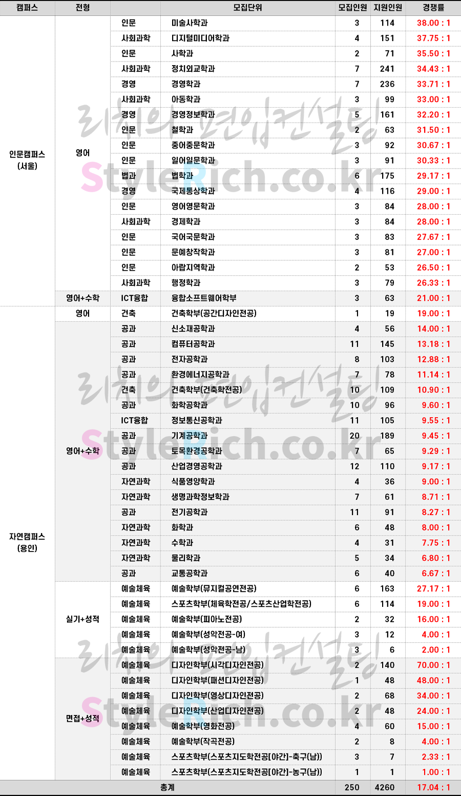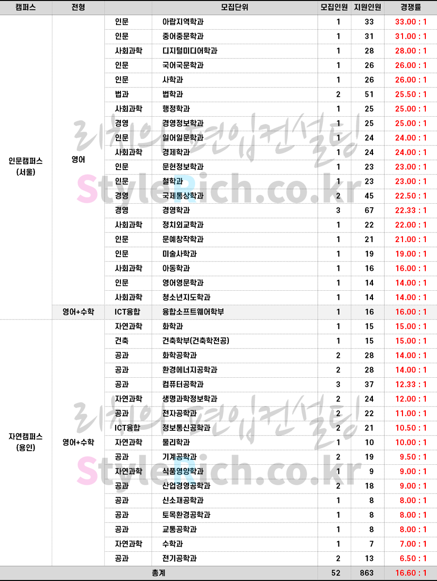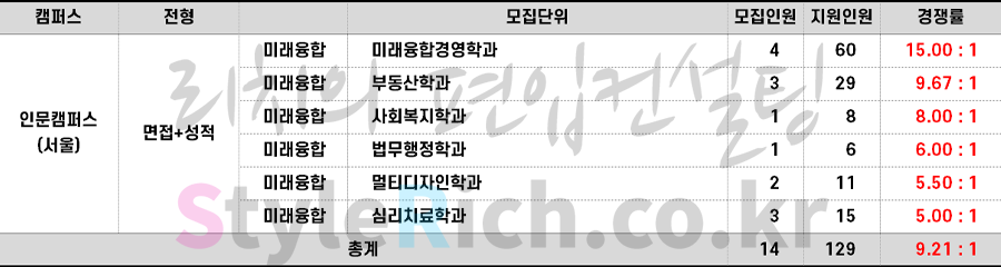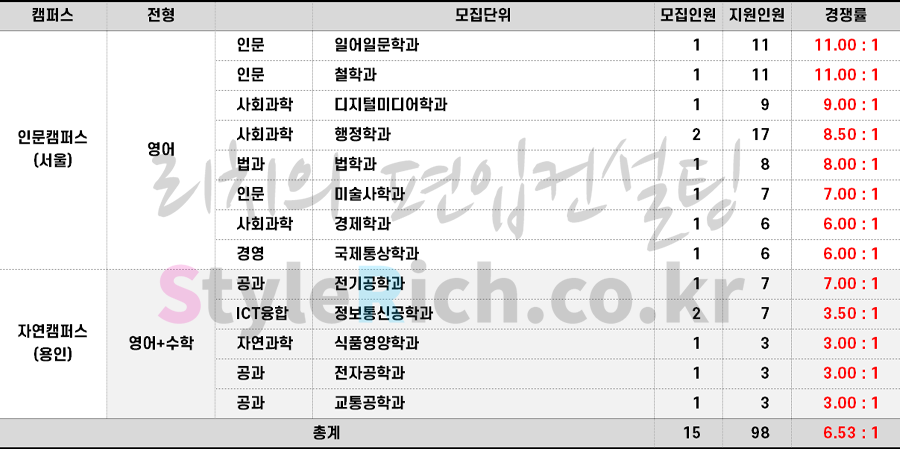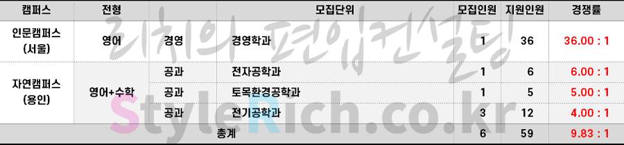 2023학년도 명지대 재외국민편입 경쟁률 현황