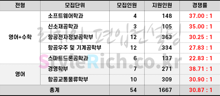 2023학년도 한국항공대 편입 경쟁률을 살펴보겠습니다.