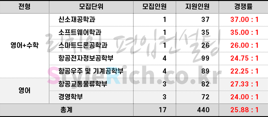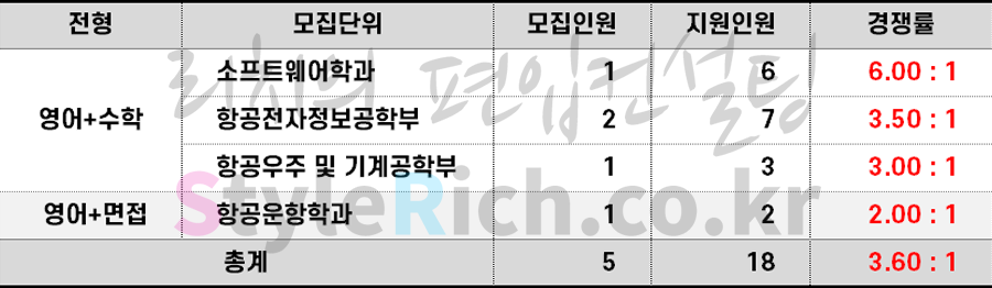 2023학년도 한국항공대 일반편입 경쟁률 현황