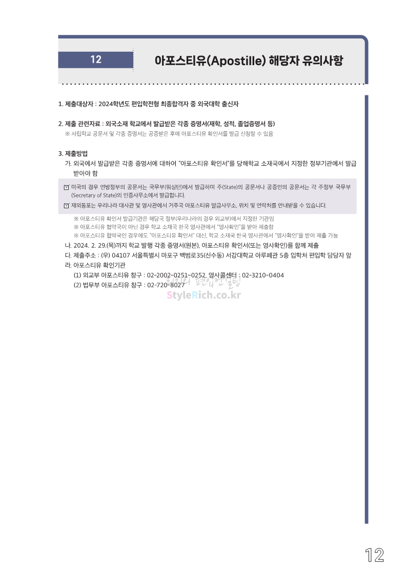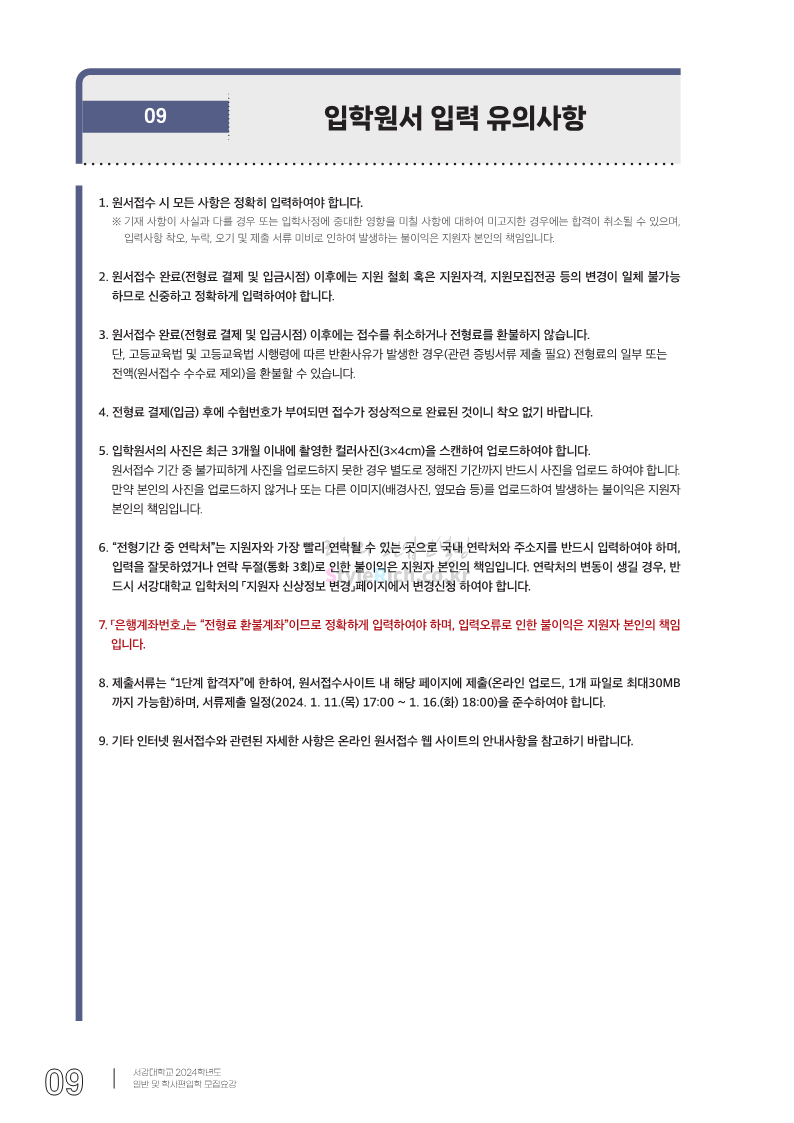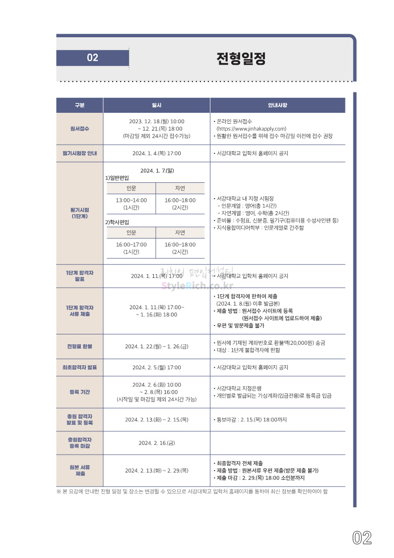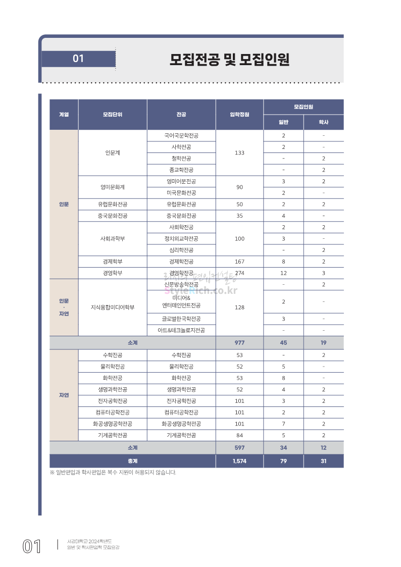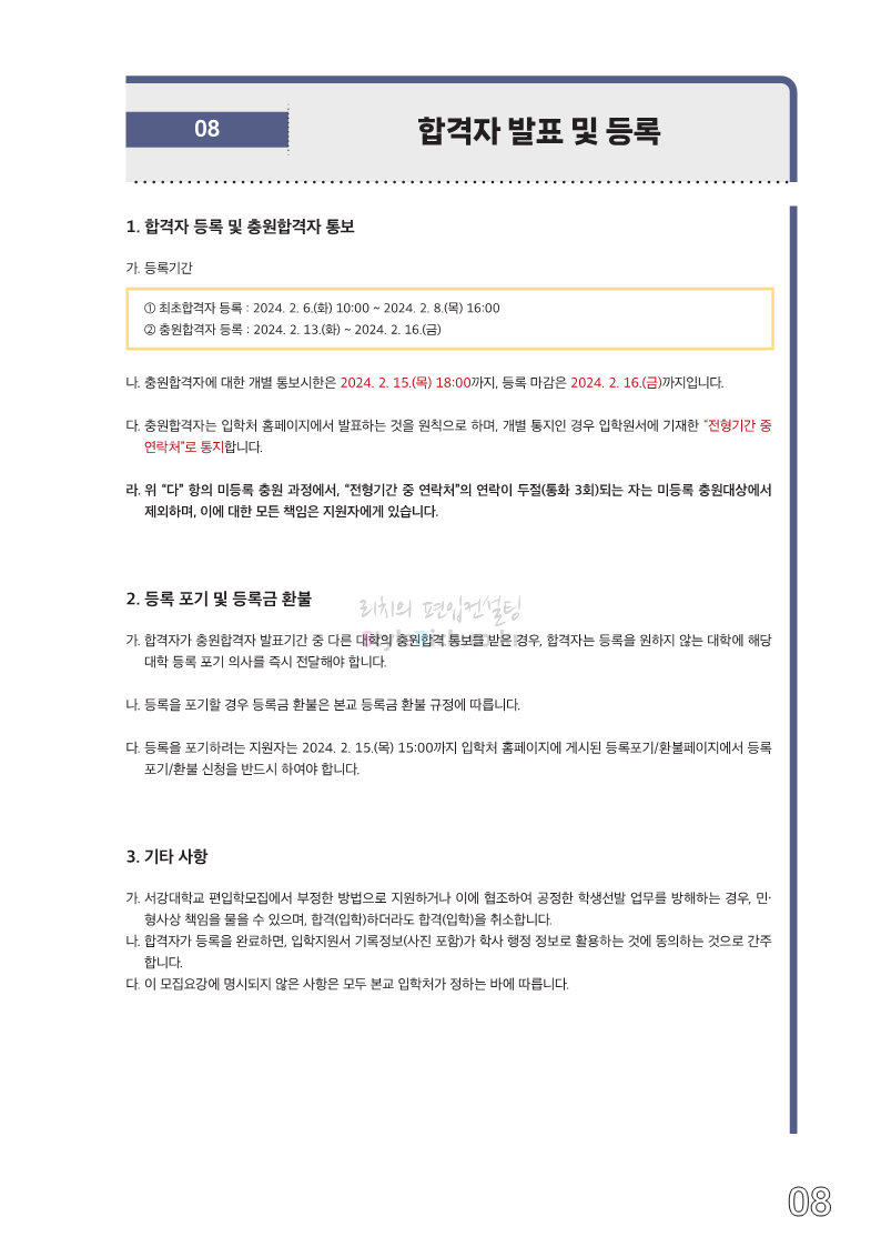 서강대 편입 2024학년도 모집요강 간편하게 보자! 2023.12.11 22:38 편입 모집요강/2024학년도 모집요강 2024학년도 서강대 편입 모집요강(2023.12.11 기준)을 간편하게 확인하세요. * 최종 모집요강 발표 이후에도 내용의 일부가 변경될 수 있으니 지원 전 반드시 서강대 입학처에서 확인하세요. ☞서강대 편입 최신 모집요강 확인하기☜ <출처: 서강대> 공유하기 게시글 관리 리치의 편입컨설팅 저작자표시 비영리 변경금지 (새창열림) '편입 모집요강 > 2024학년도 모집요강' 카테고리의 다른 글 서강대 편입 2024학년도 자연계열 필기시험(수학) 참고분야를 알아보자! (0) 2023.12.13 한양대(에리카) 2024학년도 모집요강 간편하게 보자! (0) 2023.12.13 한성대 편입 2024학년도 모집요강 간편하게 보자! (0) 2023.12.09 한국외대 편입 2024학년도 모집요강 간편하게 보자! (0) 2023.12.09 서울여대 2024학년도 모집요강 간편하게 보자! (0) 2023.12.09 댓글 공유하기 다른 글 댓글 이 글 공유하기 구독하기 구독하기 카카오톡 카카오톡 라인 라인 트위터 트위터 Facebook Facebook 카카오스토리 카카오스토리 밴드 밴드 네이버 블로그 네이버 블로그 Pocket Pocket Evernote Evernote 다른 글 서강대 편입 2024학년도 자연계열 필기시험(수학) 참고분야를 알아보자! 서강대 편입 2024학년도 자연계열 필기시험(수학) 참고분야를 알아보자! 2023.12.13 한양대(에리카) 2024학년도 모집요강 간편하게 보자! 한양대(에리카) 2024학년도 모집요강 간편하게 보자! 2023.12.13 한성대 편입 2024학년도 모집요강 간편하게 보자! 한성대 편입 2024학년도 모집요강 간편하게 보자! 2023.12.09 한국외대 편입 2024학년도 모집요강 간편하게 보자! 한국외대 편입 2024학년도 모집요강 간편하게 보자! 2023.12.09 다른 글 더 둘러보기