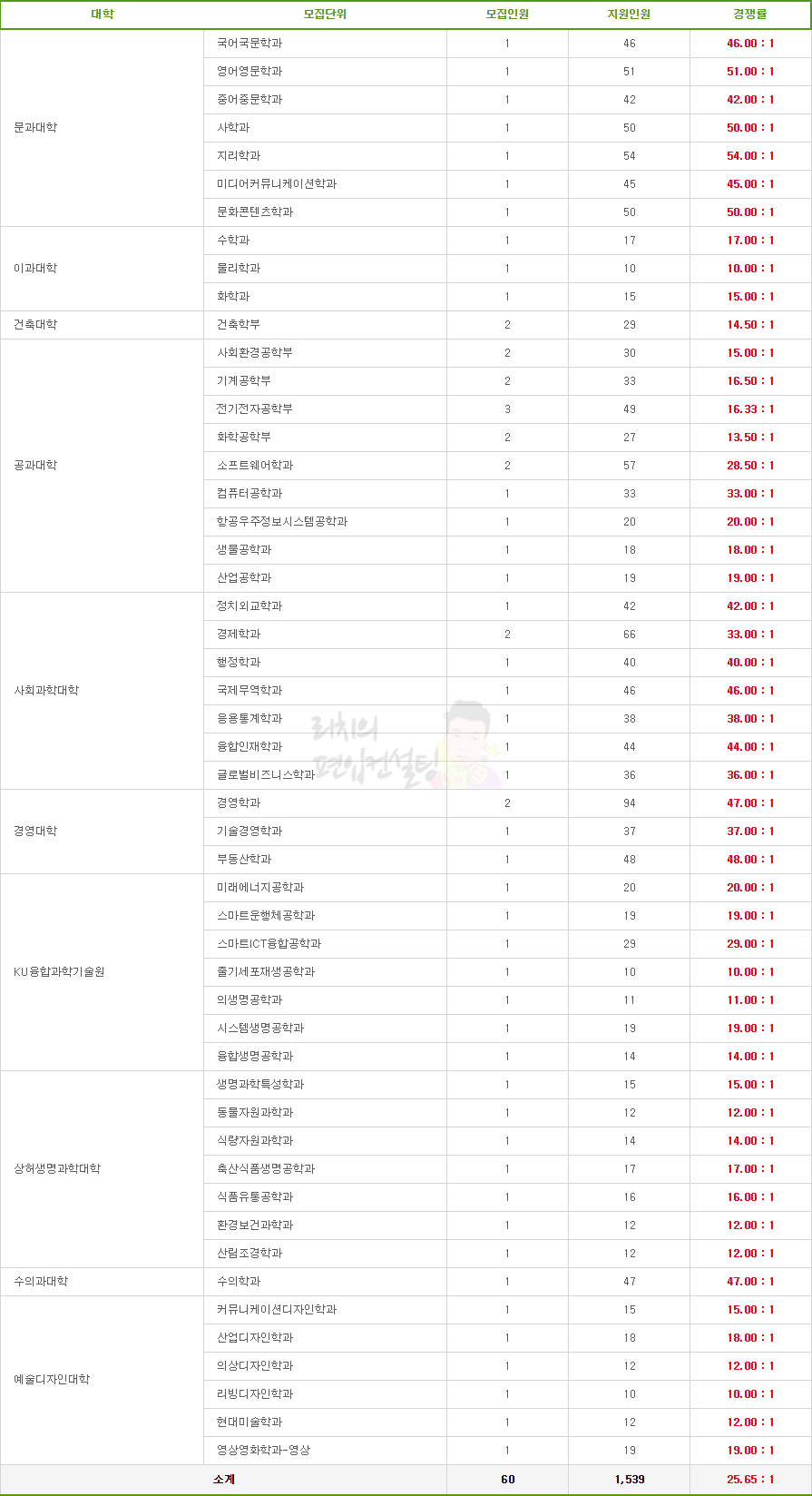 2019학년도 건국대 학사편입 경쟁률 현황