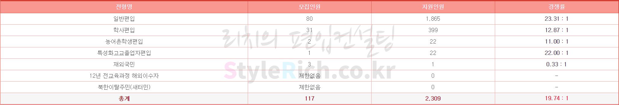 2019학년도 서울여대 편입 전형별 경쟁률 현황
