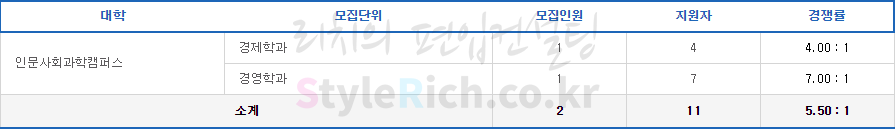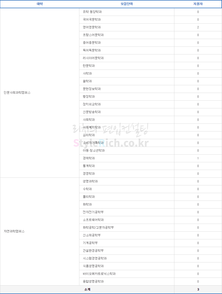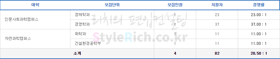 사범대학을 제외하고 2019학년도 편입에서 모집하는 전체 모집단위에서 선발하며, 선발인원을 명시하지 않아 경쟁률 산정이 의미가 없습니다. 전체 모집단위 중 영어영문학과와 경제학과만 지원하였습니다.