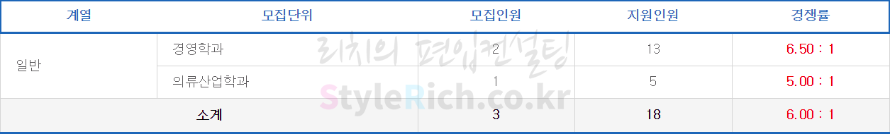 경영학과가 의류산업학과보다 경쟁률이 높았습니다.